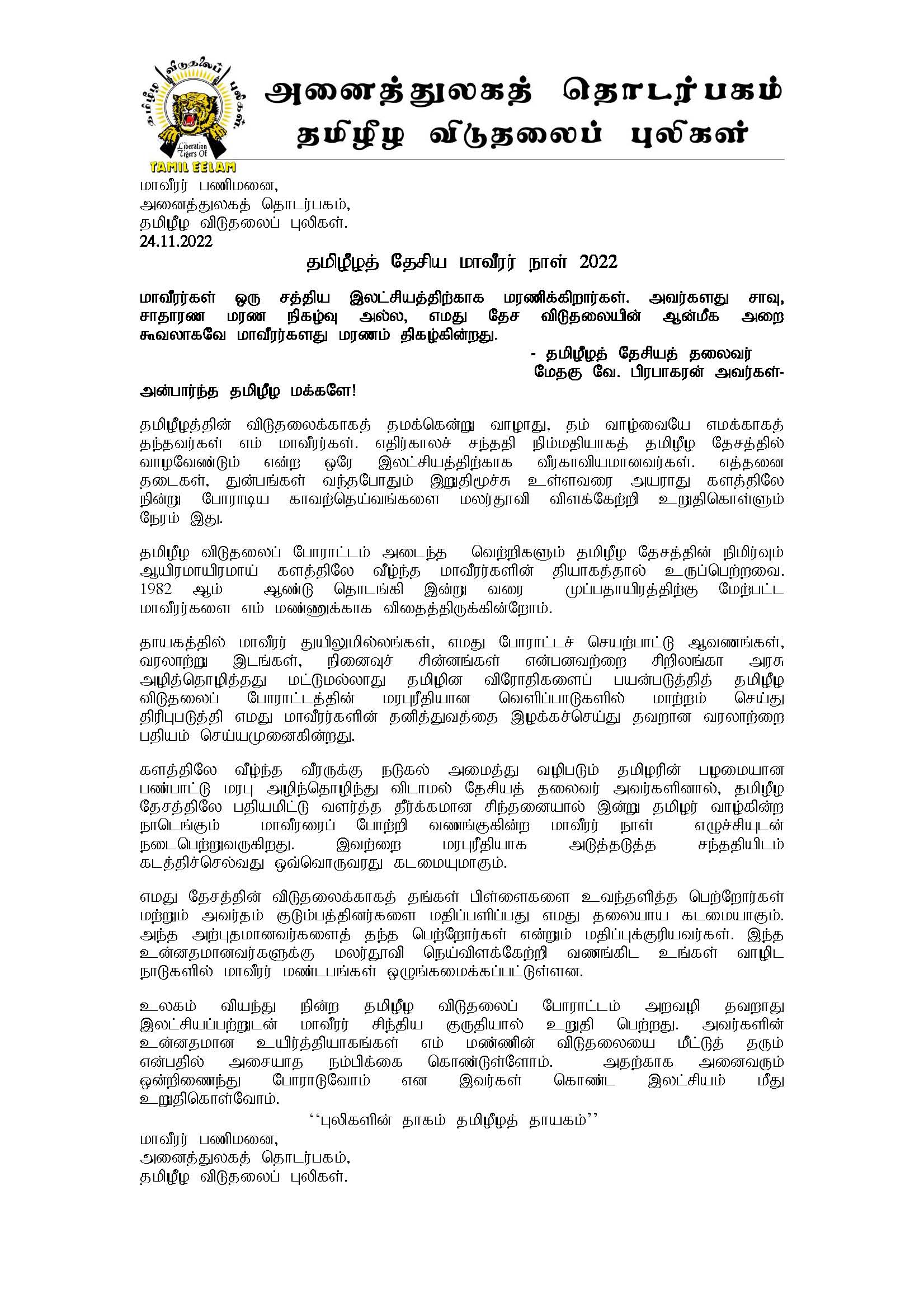தமிழீழத் தேசிய மாவீரர் நாள் 2022