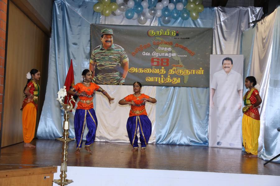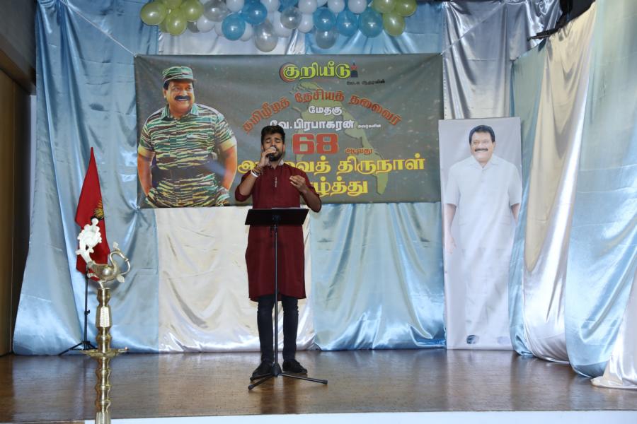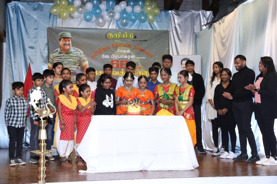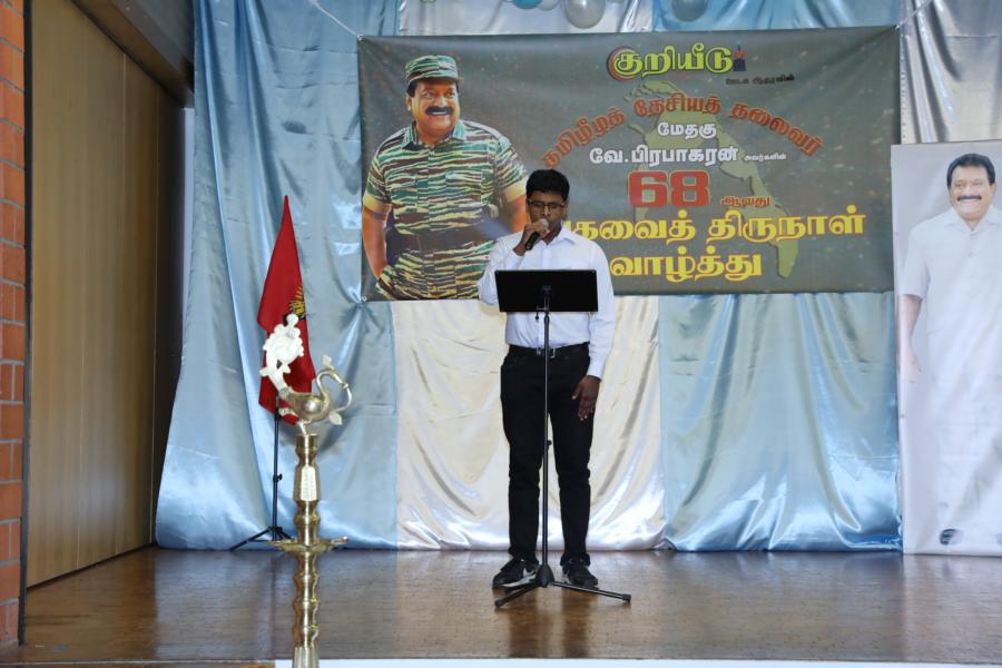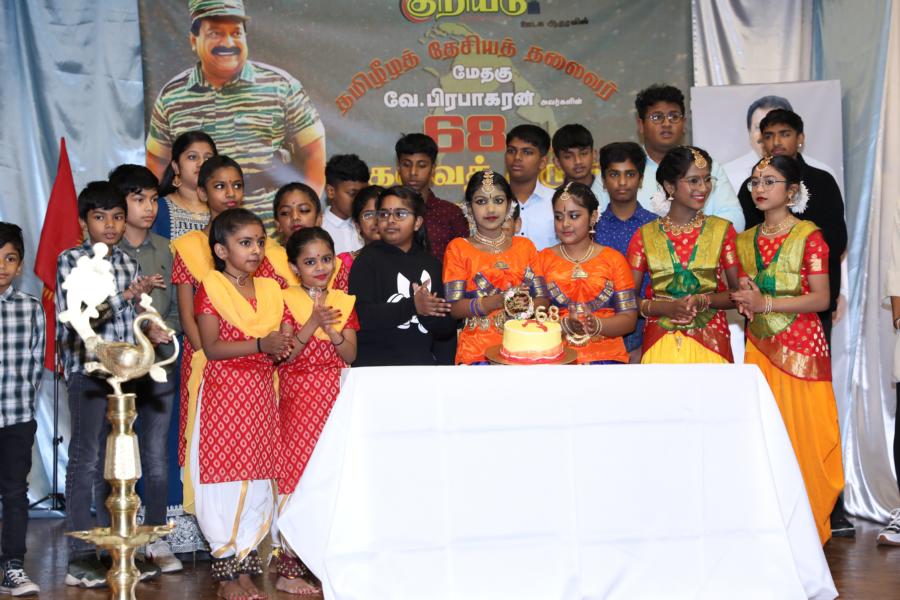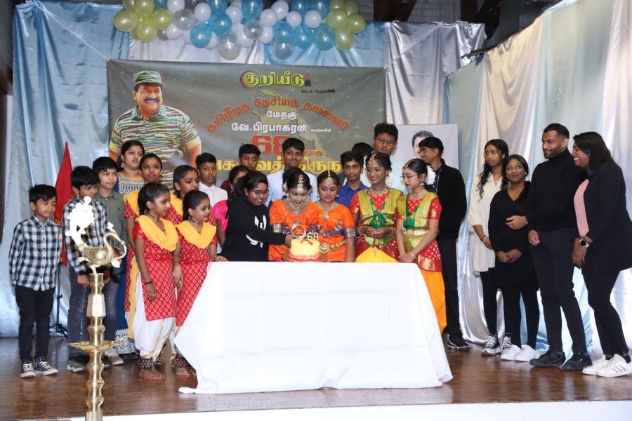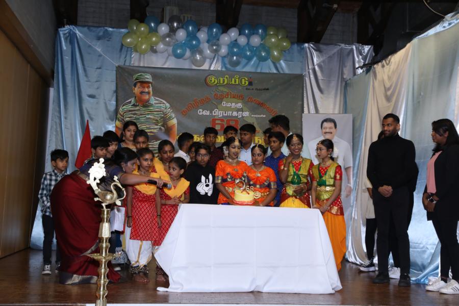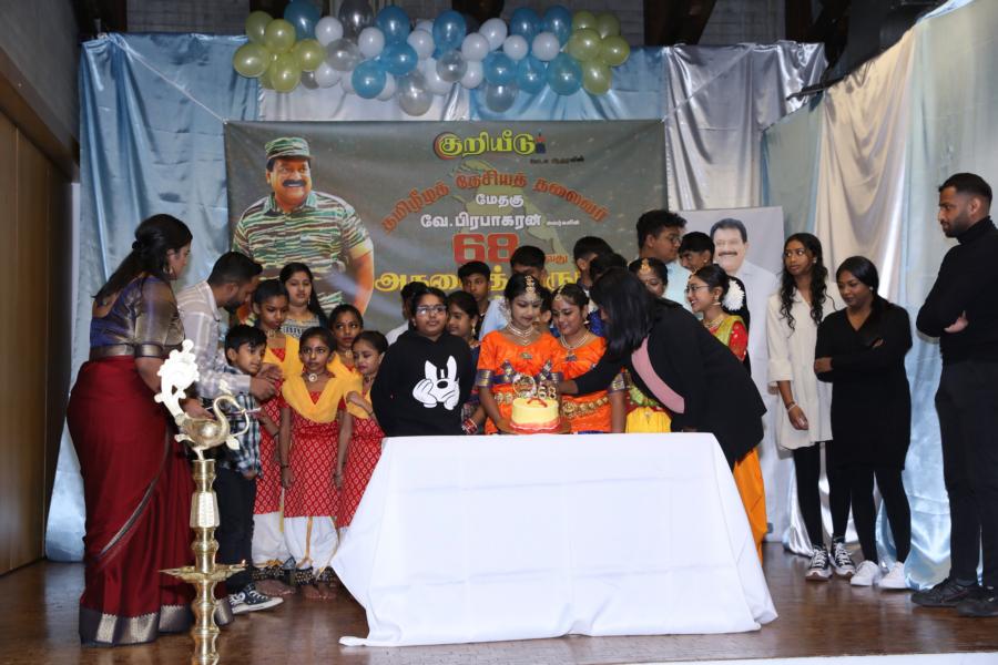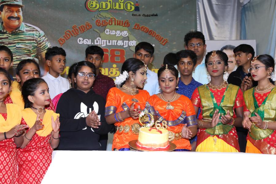 சிறப்பாக ஒழுங்கமைக்கப்பட்ட அரங்கில் தலைவரது அகவைநாள் வாழ்த்தின் அடையாளமாக, இளையோர்களால் கட்டியம் வெட்டி, இனிப்புப் பண்டங்கள் வழங்கி மகிழ்வித்தனர்.