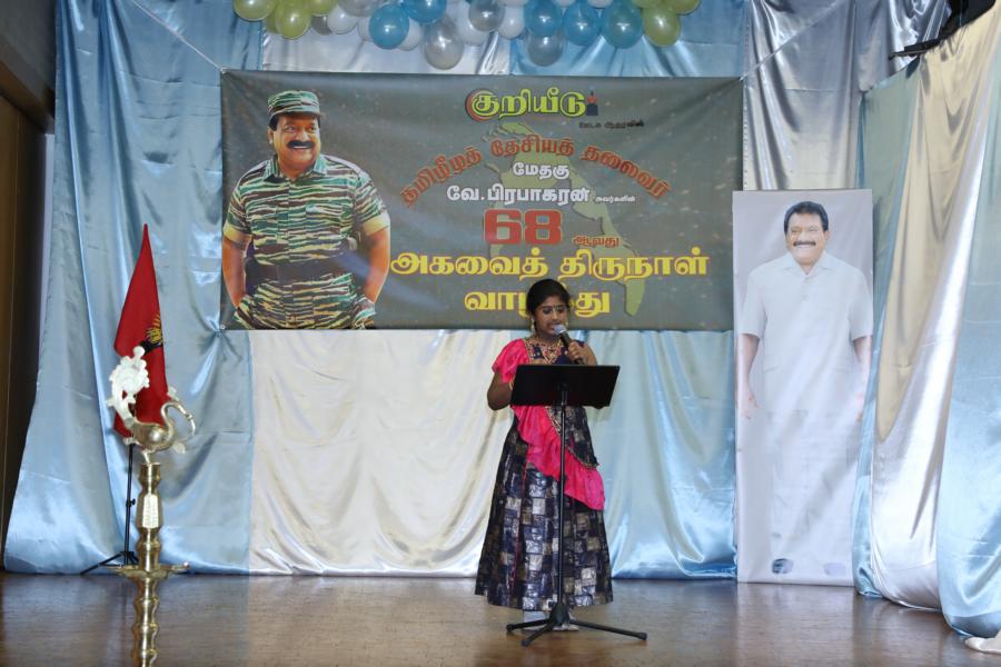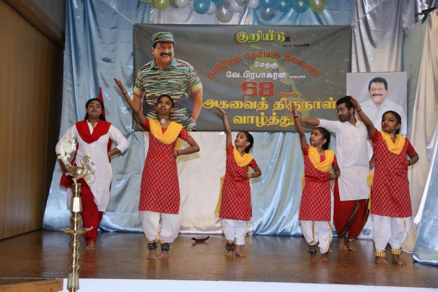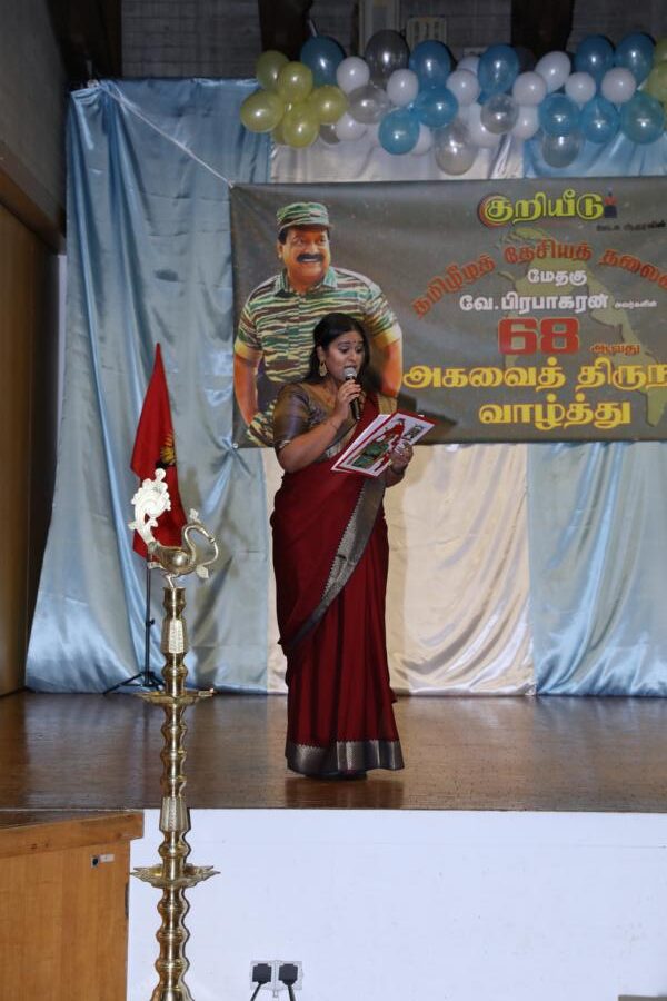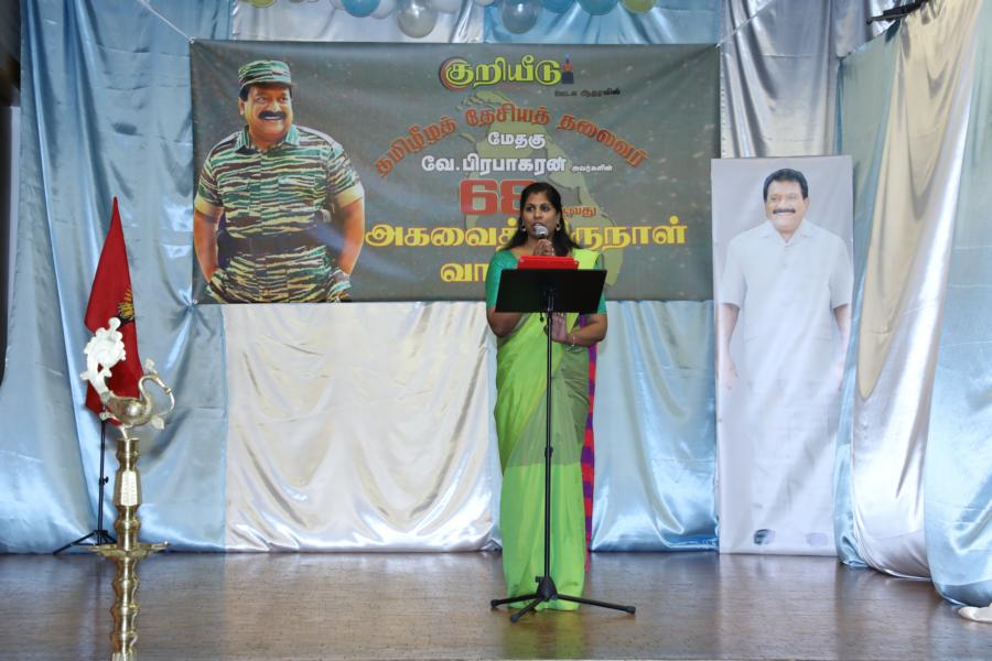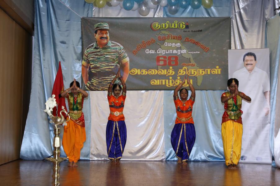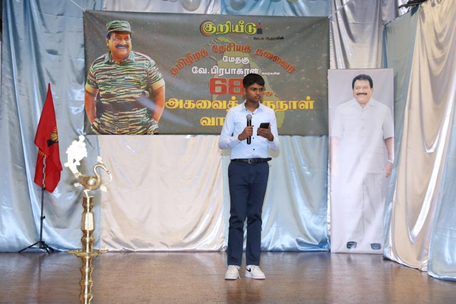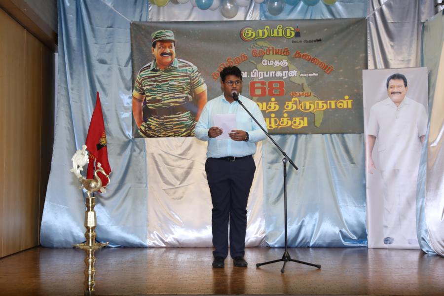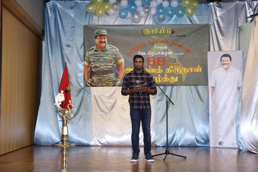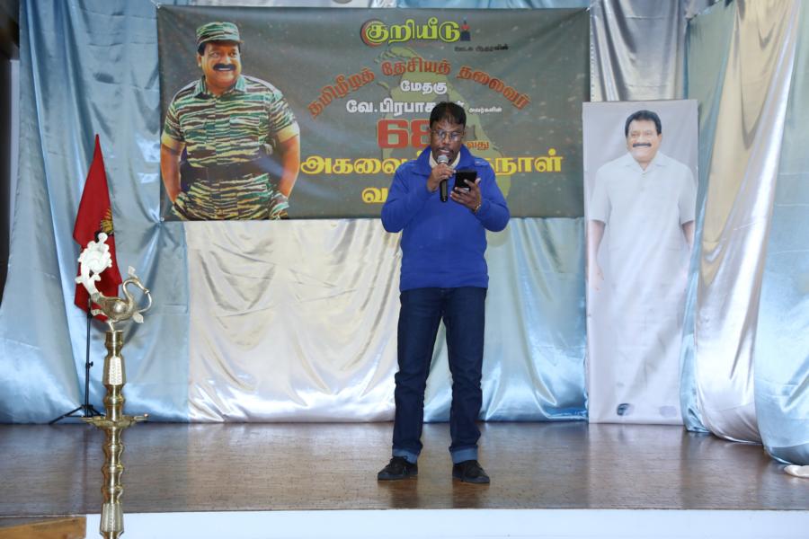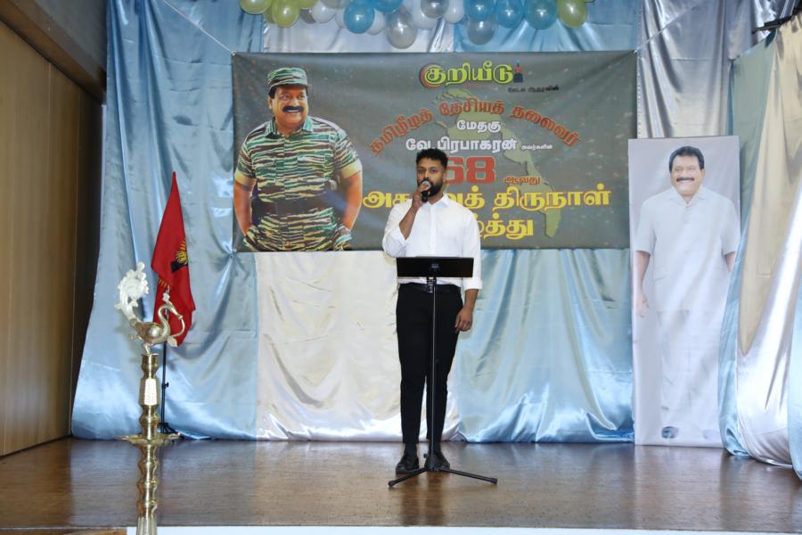 சிறப்பாக ஒழுங்கமைக்கப்பட்ட அரங்கில் தலைவரது அகவைநாள் வாழ்த்தின் அடையாளமாக, இளையோர்களால் கட்டியம் வெட்டி, இனிப்புப் பண்டங்கள் வழங்கி மகிழ்வித்தனர்.