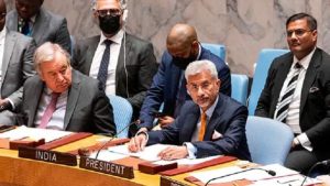 ஐ.நா.பாதுகாப்பு கவுன்சிலில் 15 உறுப்பு நாடுகள் உள்ளன. இதில் 5 நிரந்தர உறுப்பு நாடுகளும் 10 தற்காலிக உறுப்பு நாடுகளும் உள்ளன. தற்காலிக உறுப்பு நாடுகள் 2 ஆண்டுக்கு ஒரு முறை தேர்ந்தெடுக்கப்படுகின்றன. இந்த அமைப்புக்கு மாதத்துக்கு ஒரு உறுப்பு நாடு தலைமை வகிக்கும். அந்த வகையில் டிசம்பர் மாதத்துக்கு தலைமை தாங்கும் இந்தியா 2 முக்கிய பிரச்சினைகள் குறித்து விவாதித்திக்கிறது. இதற்கு மத்திய வெளியுறவுத் துறை அமைச்சர் எஸ்.ஜெய்சங்கர் தலைமை தாங்கினார்.