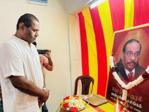 அதன் போது, தேசத்தின் குரல் அன்ரன் பாலசிங்கத்தின் திருவுருவ படத்திற்கு நாடாளுமன்ற உறுப்பினர் கஜேந்திரகுமார் பென்னம்பலம் மலர் மாலை அணிவித்து அஞ்சலி செலுத்தினார்.