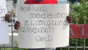 அரசியல் கைதிகளை உடனடியாக விடுதலை செய்யக் கோரி திருகோணமலையில் போராட்டமொன்று முன்னெடுக்கப்பட்டுள்ளது.