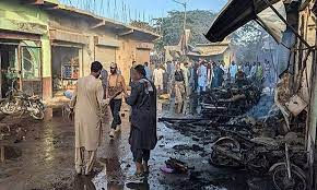 பாகிஸ்தானின் தென்மேற்கு மாகாணமான பலுசிஸ்தானில் உள்ள லாஸ்பேலா நகரில் சந்தை ஒன்று உள்ளது. இங்கு ஏராளமான கடைகள் அமைந்துள்ளன. இந்தநிலையில் நேற்று இந்த சந்தை வழக்கம் போல் பரபரப்பாக இயங்கி கொண்டிருந்தது.