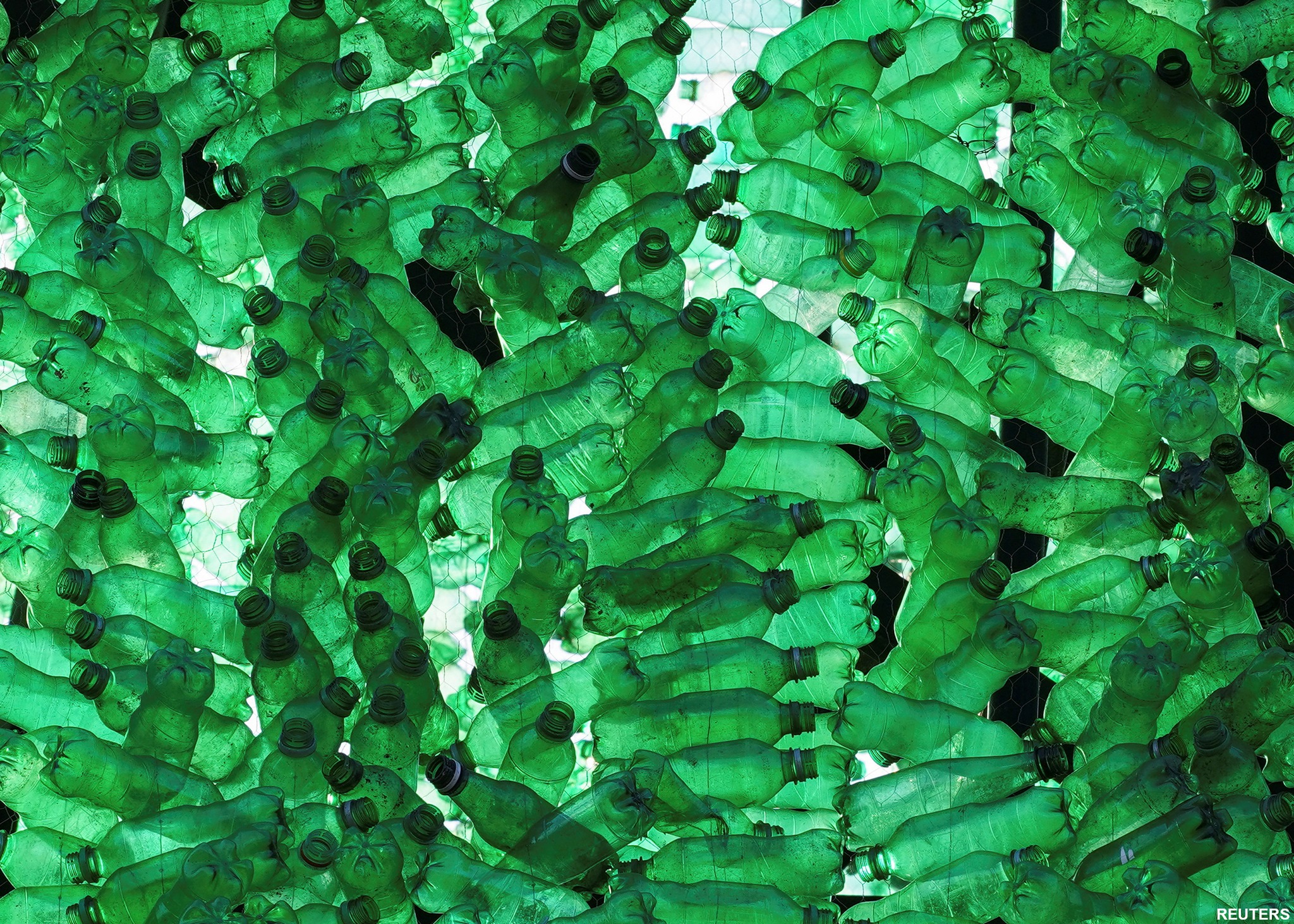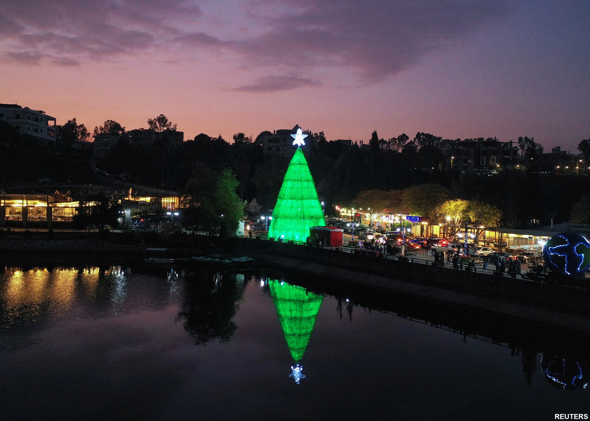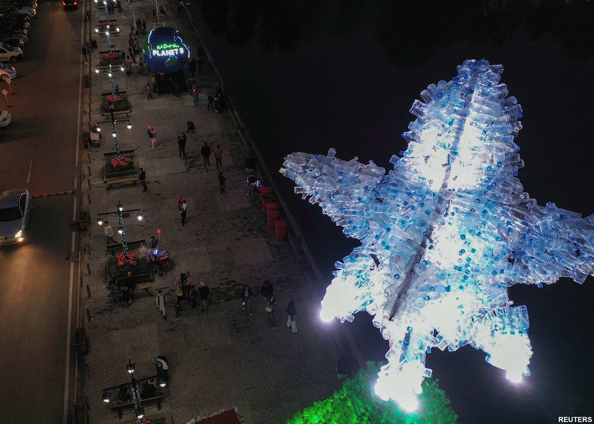 லெபனானில் விழிப்புணர்வை ஏற்படுத்த, மறுசுழற்சி செய்யப்படும் பிளாஸ்டிக் போத்தல்களில் கிறிஸ்மஸ் மரம் வடிவமைக்கப்பட்டுள்ளது.
