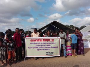 இந்த நிலையில் இந்த மக்களின் போராட்டத்துக்கு ஆதரவு தெரிவித்து புதுக்குடியிருப்பு வணிகர் கழகத்தினர் இன்றைய தினம் வருகைதந்திருந்ததோடு கவனயீர்ப்பு போராட்டம் ஒன்றினையும் இராணுவ முகாமுக்கு முன்பாக முன்னெடுத்திருந்தனர்.