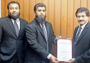 கடந்த 15 ஆம் திகதி இலங்கை தரக்கட்டளை நிறுவனத்தில் வைத்து பணிப்பாளர் காமினி தர்மவர்தனவினால் ஹலால் சான்றுறுதிப் பேரவையின் சர்வதேச விவகார தலைவர் எம்.ஜே.எம். பாரியிடம் வழங்கிவைக்கப்பட்டது.