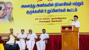 இந்நிலையில், முதல்வர் ஸ்டாலின் தலைமையில் அணிகளின் நிர்வாகிகள், குழுக்களின் தலைவர்கள், உறுப்பினர்களின் ஆலோசனை கூட்டம் சென்னை அண்ணா அறிவாலய வளாகத்தில் உள்ள கலைஞர் அரங்கில் நேற்று நடந்தது.இதில், பொதுச் செயலாளர் துரைமுருகன், பொருளாளர் டி.ஆர்.பாலு, தலைமை நிலையச் செயலாளர் கே.என்.நேரு, துணை பொதுச் செயலாளர்கள் பங்கேற்றனர்.