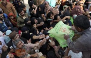 இதனை வாங்குவதற்கு கூட்டம் முண்டியடித்தது. இந்த கூட்ட நெரிசலில் சிக்கி 40 வயது தொழிலாளி ஹர்சிங் கோல்ஹி என்பவர் உயிரிழந்தார். இவருக்கு, 7 குழந்தைகள் உள்ளனர். பிள்ளைகளின் பசியைப் போக்க உணவுக்காக போராடி தந்தை உயிரிழந்த சம்பவம் அப்பகுதியில் பெரும் சோகத்தை ஏற்படுத்தியது. பாகிஸ்தான் முக்கிய நகரான காரச்சியில் ஒரு கிலோ கோதுமை மாவின் விலை ரூ.160 ஆக உள்ளது குறிப்பிடத்தக்கது.