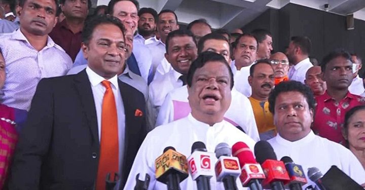அமைச்சர் பந்துல குணவர்தன, நாடாளுமன்ற உறுப்பினர் சாகர காரியவசம் மற்றும் அக்கட்சியை பிரதிநிதித்துவப்படுத்தும் குழுவினர் கொழும்பு மாவட்ட செயலகத்திற்கு வந்து தேர்தலுக்கான கட்டுப்பணத்தை செலுத்தியுள்ளனர்.