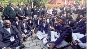 இதற்குள் சிலர் வாக்குச்சாவடிக்குள் நுழைந்து, வாக்களிக்கப்பட்ட வாக்குச்சீட்டைக் கைப்பற்றி வெளியே எடுத்துச் சென்றனர். இதனால் வழக்கறிஞர்களில் ஒரு பிரிவினர் அங்கிருந்த மேஜை,நாற்காலிகளை அடித்து நொறுக்கினர். பின்னர் வழக்கறிஞர்கள் தரையில் அமர்ந்து கோஷம் எழுப்பி,தர்ணாவில் ஈடுபட்டனர். அதையடுத்து இந்த தேர்தலை தேதி குறிப்பிடாமல் தள்ளிவைப்பதாக தேர்தல் அதிகாரியான மூத்த வழக்கறிஞர் எம்.கே.கபீர் அறிவித்தார்.