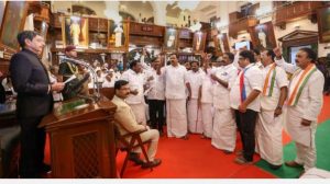 தமிழக சட்டப்பேரவையின் நடப்பாண்டு முதல் கூட்டம், ஆளுநர் ஆர்.என்.ரவி உரையுடன் நேற்று முன்தினம் தொடங்கியது. அப்போது, அரசால் தயாரித்து அளிக்கப்பட்ட உரையில், சில பகுதியை தவிர்த்துவிட்டு ஆளுநர் உரையை வாசித்தார். இதையடுத்து, ஆளுநர் உரையின் தமிழாக்கத்தை பேரவைத் தலைவர் மு.அப்பாவு வாசித்தார். அவர் வாசித்து முடித்ததும் எழுந்த முதல்வர் மு.க.ஸ்டாலின், ஆளுநர் தனது உரையை முழுமையாகப் படிக்காததற்கு வருத்தம் தெரிவித்ததுடன், அரசால் அச்சடித்து வழங்கப்பட்ட தமிழ், ஆங்கில உரைகள் மட்டும் பேரவை குறிப்பில் இடம்பெறும். இவை தவிர்த்து ஆளுநர் பேசியது இடம்பெறாது என்ற தீர்மானத்தை கொண்டுவந்தார். இந்த தீர்மானம் ஒருமனதாக நிறைவேற்றப்பட்டது.