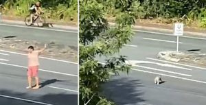 விக்டோரியாவில் அதிகளவு வாகனங்கள் பயணிக்கும் அதிவேக நெடுஞ்சாலையில் தனது உயிரை பணயம் வைத்து கோலாவை பாதுகாப்பாக வீதியின் மறுபக்கத்திற்கு அழைத்து சென்ற குயின்ஸ்லாந்து நபரின் வீடியோ பலரின் கவனத்தை ஈர்த்துள்ளது.