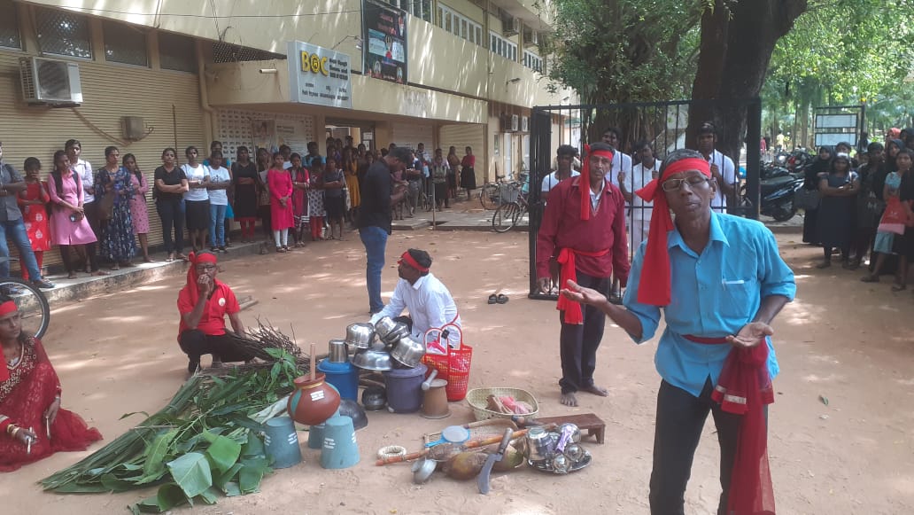 இதனை உணர்த்தும் வகையில் சிறைக்கூண்டு அமைக்கப்பட்டு, சிறையில் உள்ள கைதிகளை போல உருவகித்து இந்த நாடகத்தினை நடத்தியிருக்கிறோம்.