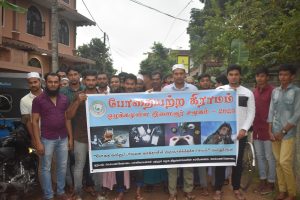‘போதையற்ற கிராமம் ஒழுக்கமுள்ள இளைஞர் சமூகம்’ எனும் தொனிப்பொருளில் இடம்பெற்ற பேரணியில் பெருந்திரளான பொதுமக்கள் கலந்துகொண்டு சுலோகங்களை ஏந்தியவாறு எதிர்ப்புகளை தெரிவித்தனர்.
