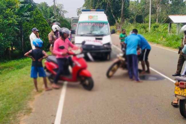 மோட்டார் சைக்கிள் ஓட்டுனர் நவகத்தேகமவில் இருந்து கல்கமுவ நோக்கி சென்று மீண்டும் நவகத்தேகம நோக்கி மோட்டார் சைக்கிளை திருப்ப முற்பட்ட போது, ஆனமடுவவிலிருந்து கல்கமுவ நோக்கி பயணித்த சுவசெரிய நோயாளர் காவு வண்டியுடன் வாகனம் மீது மோதியுள்ளது.