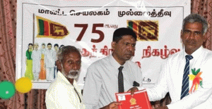 இலங்கையின் 75 ஆவது சுதந்திரதின நிகழ்வை கொண்டாடும் முகமாக முல்லைத்தீவு புதுக்குடியிருப்பு பிரதேச செயலக பிரிவில் தெரிவு செய்யப்பட்ட 75 குடும்பங்களுக்கு காணி மீள் அளிப்பு பத்திரங்கள் வழங்கப் பட்டுள்ளன.