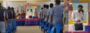 பின்னர் மாவட்ட ஆட்சியர் அரசு பள்ளிகளில் மறு சுழற்சி செய்வதற்கான ஆணையை டிஸ்லரி மேலாளர் கணேசனிடம் வழங்கினார். மேலும் மாணவர்களின் பிளாஸ்டிக் மறுசுழற்சி செயல்முறை விளக்கத்தையும் கேட்டறிந்தார் நிகழ்வு முடிவதற்குள் மாவட்ட ஆட்சியர் புறப்பட்டு சென்ற நிலையில் பிளாஸ்டிக் மறுசுழற்சிக்கான நிகழ்ச்சி தொடர்ந்து நடைபெற்றது. இந்த நிலையில் நிகழ்ச்சி முடிந்து மாணவ மாணவியர்கள், அரசு அதிகாரிகள், நகராட்சி, நிர்வாகிகள் என அனைவரும் எழுந்து நின்று தேசிய கீதம் பாடினர். ஆனால் தேசிய கீதத்தை அவமதிக்கும் விதமாக முதன்மை கல்வி அலுவலர் ராமன் செல்போனில் பேசிக் கொண்டிருந்தார். மாணவ, மாணவிகளுக்கு முன்னுதாரணமாக இருக்க வேண்டிய அதிகாரி, தேசிய கீதத்தை அவமதித்து செல்போனில் உரையாடிக்கொண்டிருந்த சம்பவம் பெரும் அதிர்வலைகளை ஏற்படுத்தி உள்ளது.