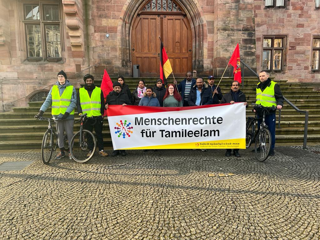 ஐக்கிய நாடுகளின் மனித உரிமைகள் ஆணையகத்தின் 52 வது கூட்டத்தொடர் நடைபெற்றுவரும் சூழலில் சிறிலங்கா பேரினவாத அரசினால் திட்டமிட்டு நடாத்தப்பட்டுவருகின்ற தமிழின அழிப்பிற்கு அனைத்துலக சுயாதீன விசாரணையை நடாத்தக் கோரியும் தமிழீழமே தமிழர்களுக்கான நிரந்தரத் தீர்வு என்பதனை வலியுறுத்தியும் மனித நேய ஈருருளிப்பயணம் ஐ.நா சபைநோக்கி பயணித்துக்கொண்டிருக்கின்றது. அந்தவகையில் நேற்று 22.2.2023 யேர்மனி நோக்கிப் பயணித்து மாலை டில்லிங்கன் என்ற இடத்தில் நிறைவு பெற்றது.