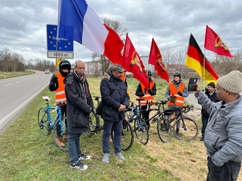குறிப்பாக, சிறிலங்கா பேரினவாத அரசு நிகழ்த்திய திட்டமிட்ட தமிழின அழிப்பிற்கு அனைத்துலக சுயாதீன விசாரணை மற்றும் தமிழர்களின் பூர்வீக நாடாகிய தமிழீழத்தின் விடுதலை, குற்றவாளிகளுக்கு பயண மற்றும் பொருளாதார தடை குறித்து விவரிக்கப்பட்டு அவை நம்பிக்கையான அடுத்த நகர்விற்கும் வழிவகுத்தன. தொடரும் இப்போராட்டம் லுக்சாம்பூர்க் , யேர்மனி நாடுகள் ஊடாக பிரான்சு நாட்டின் எல்லையினை வந்தடைந்தது குறிப்பிடத்தக்கது. பிரான்சில் இன்று பிரான்சு காவல்துறையின் பாதுகாப்புடன் கம்சயிம், லா வன்சுனு முதல்வர்களிடத்தில் எமது கோரிக்கை அடங்கிய மனு கையளிக்கப்பட்டு, பின் ஈருருளிப் பயணம் இன்றைய நாளில் 100 கிலோமீற்றர்களைக் கடந்து சில்றிக்காம் என்னும் இடத்தில் நிறைவுக்கு வந்தது