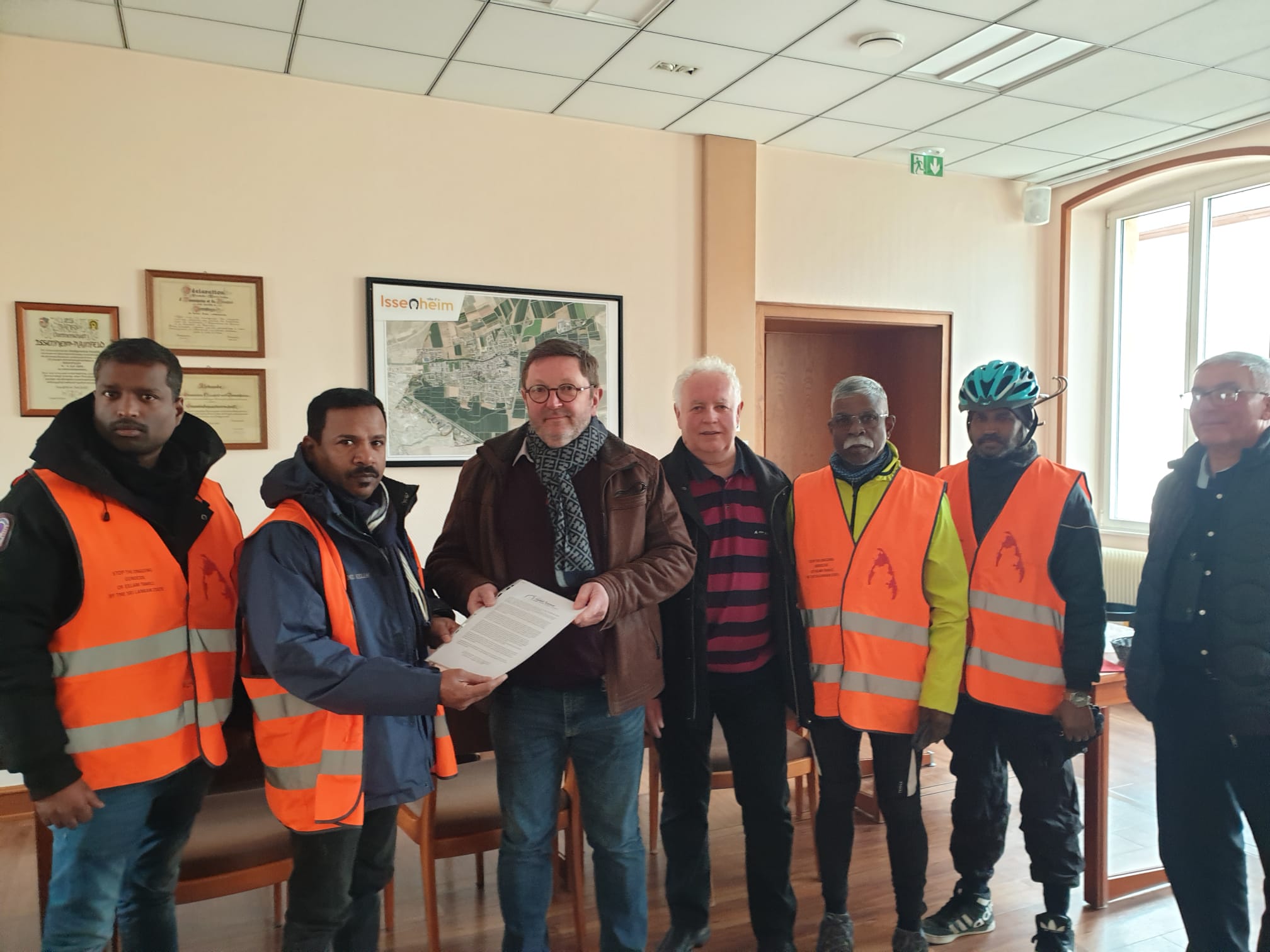 சிறிலங்கா பேரினவாத அரசின் பொய் முகத்திரை கிழித்தெறியவும் திட்டமிட்டு தமிழர்கள் மீது மேற்கொள்ளப்பட்ட தமிழின அழிப்பிற்கு அனைத்துலக சுயாதீன விசாரணையை நடாத்தவும் பிரான்சு அரசாங்கம் மற்றும் ஐரோப்பிய ஒன்றியம் முக்கிய பங்காற்றவேண்டும் எனக் கோரி 26 வது தடவையாக தொடருகின்ற அறவழிப்போராட்டத்தின் தொடர்ச்சியினை இந்த மாநகரசபைகள் நன்கு அறிந்திருந்ததால் மிக உறுதியான நம்பிக்கை வாக்குறுதிகளைத் தந்திருந்தன. குறிப்பாக தாம் பிரான்சு நாட்டின் வெளி நாட்டமைச்சிற்கும் அரச அதிபருக்கும் இதுவரை தமிழர்கள் நிலை சார்ந்து அனுப்பிய கடிதங்கள் மற்றும் இம்முறை இறுதியாக அனுப்பிய கடிதங்கள் போன்றவற்றை மனித நேய ஈருருளிப்போராட்டம் மேற்கொள்வோரிடம் சமர்ப்பித்தனர்.