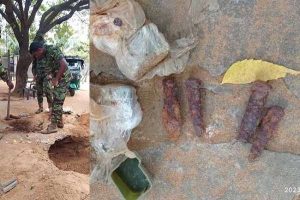 இதனையடுத்து குறித்த இடத்தில் வீட்டு உரிமையாளரால் தோண்டப்பட்ட போது வெடிபொருட்கள் இருப்பதை அவதானித்தனர்.