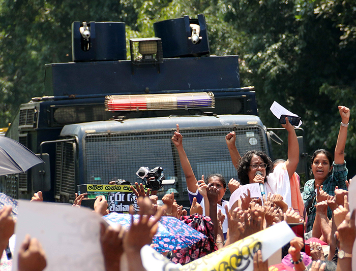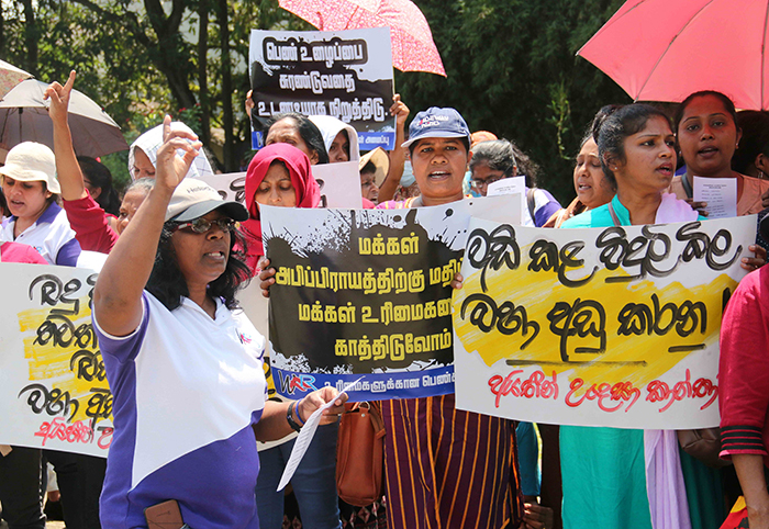 சர்வதேச பெண்கள் தினத்தை முன்னிட்டு உரிமைகளுக்கான பெண்கள் அமைப்பினர் இன்று காலை பத்தரமுல்லை பொல்துவ சந்தியில் அரசாங்கத்திற்கு எதிராக ஆர்ப்பாட்டமொன்றில் ஈடுபட்டிருந்தனர்.