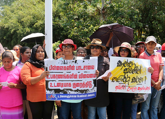 வரி அதிகரிப்பு, பாடசாலை மாணவர்களின் உபகரணங்கள் உள்ளிட்ட பொருட்களின் விலையேற்றம் , மின்சார கட்டண அதிகரிப்புக்கு மற்றும் தேர்தலை பிற்போட்டமைக்கு எதிர்ப்பு தெரிவித்து பதாதைகளை ஏந்தியும், கோஷங்களை எழுப்பியும் இந்த ஆர்ப்பாட்டத்தை முன்னெடுத்திருந்தனர்.
