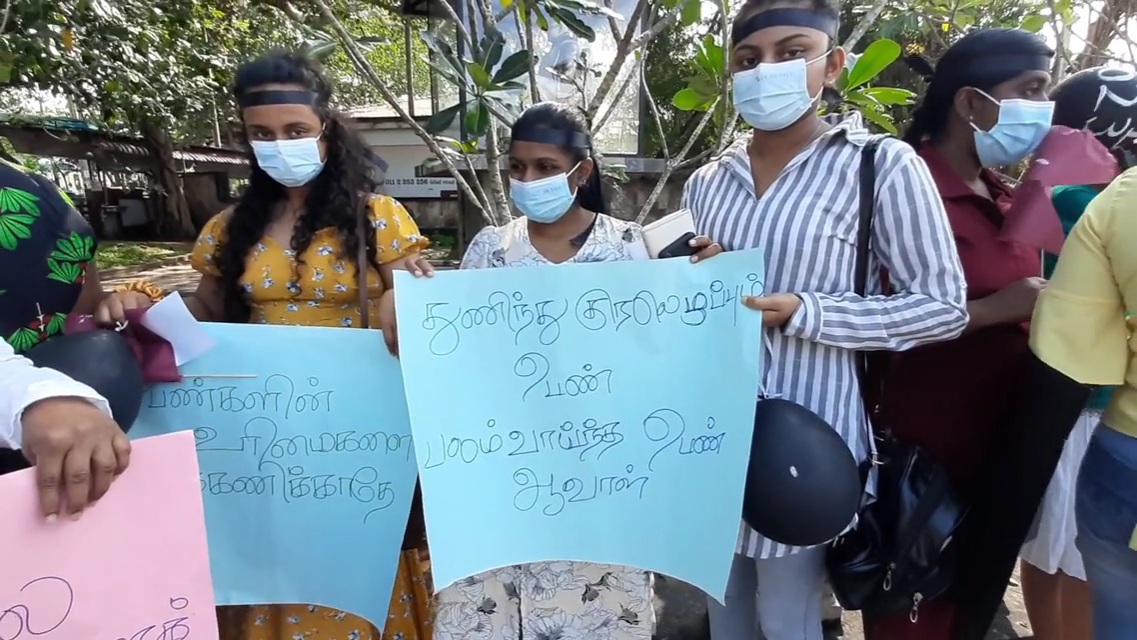 இதன்போது ஆர்ப்பாட்டத்தில் ஈடுபட்டிருந்த பெண்கள் சுலோக அட்டைகளை ஏந்தியவாறு, தமது உரிமைகள் தொடர்பாக எதிர்ப்பு கோஷங்களை எழுப்பியிருந்தனர்.