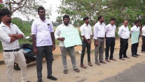 மாந்தை மேற்கு பிரதேச செயலகத்திற்கு முன் அமைதியான முறையில் பதாகைகளை ஏந்தியவாறு போராட்டத்தில் ஈடுபட்டுள்ளனர். தமது கடமையை உரிய முறையில் முன்னெடுக்கும் அரச உத்தியோகஸ்தர்களுக்கு இவ்வாறான அச்சுறுத்தல்கள் விடுக்கப்பட்டு வருகின்ற நிலையில் அவர்களுக்கு உரியப் பாதுகாப்பு வழங்கப்பட வேண்டும் என்ற கோரிக்கையை முன் வைத்துள்ளனர்.மேலும், அரச உத்தியோகஸ்தர்கள் தமது கடமையை மேற்கொள்ளும் போது அதற்கான கௌரவத்தையும் வழங்க வேண்டும் என்ற கோரிக்கையை முன் வைத்துள்ளனர்.எனவே, கடந்த 3ஆம் திகதி மாந்தை மேற்கு பிரதேச செயலகப் பிரிவுக்கு உட்பட்ட ஆத்தி மோட்டை பகுதியில் இடம் பெற்ற சட்டவிரோத மணல் அகழ்வைத் தடுத்து நிறுத்தச் சென்ற அரச உத்தியோகஸ்தர்களுக்கு எதிராகச் சட்டவிரோத மண் அகழ்வில் ஈடுபட்டவர்கள் கடுமையான அச்சுறுத்தலை விடுத்துள்ளனர்.