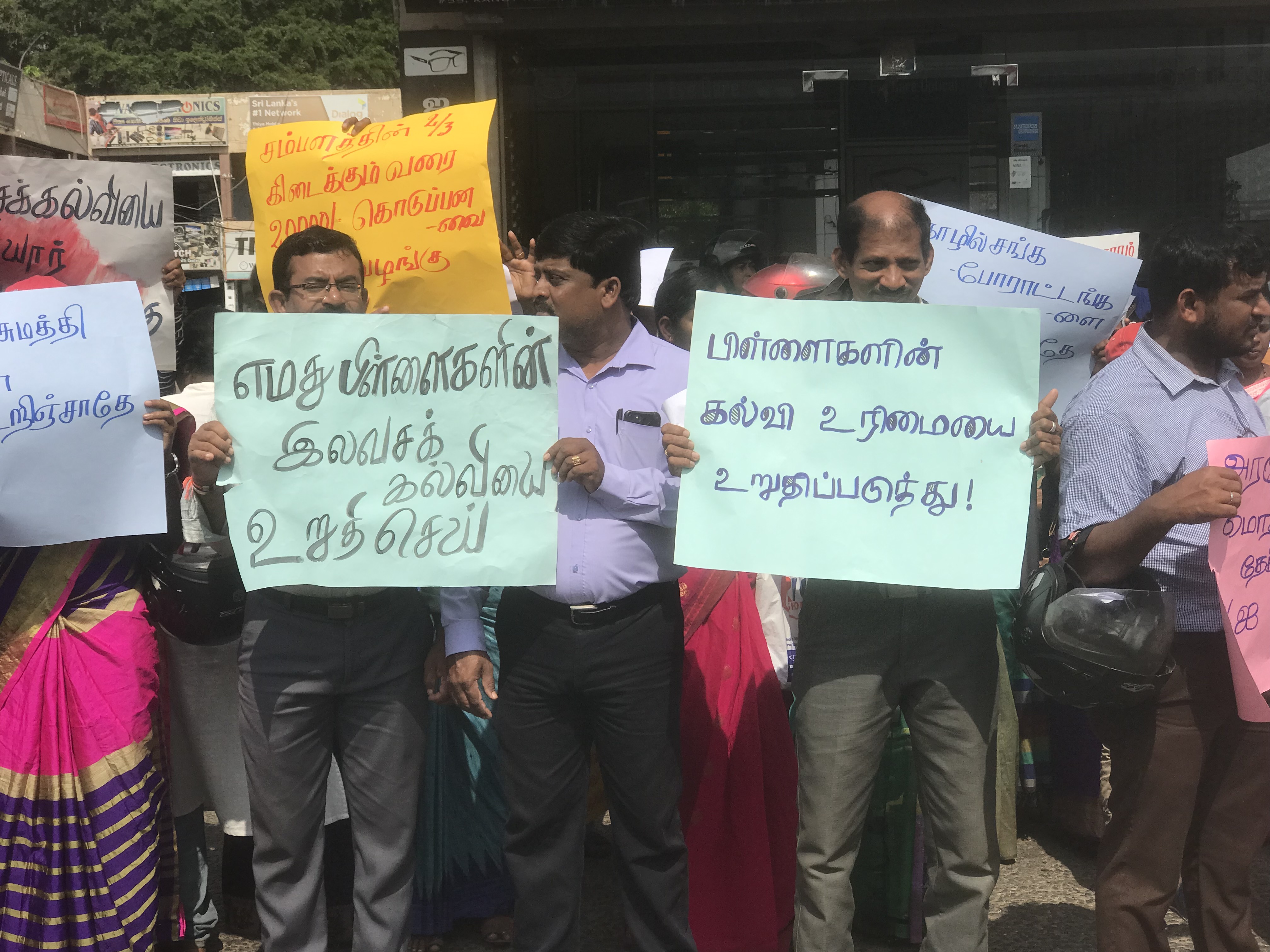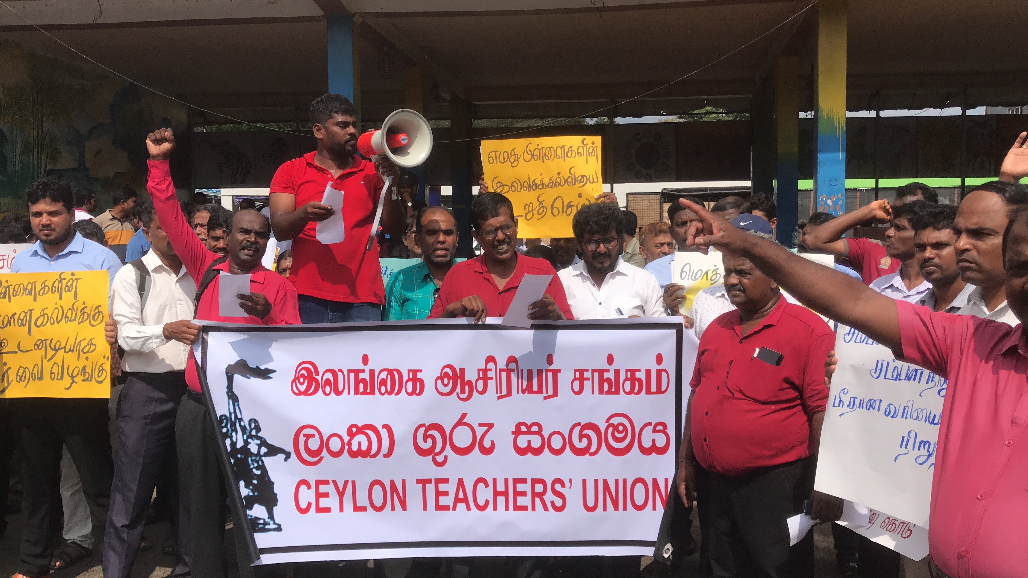 இலங்கை ஆசிரியர் சங்கத்தின் ஏற்பாட்டில் இடம்பெற்ற குறித்த ஆர்ப்பாட்டத்தில் இலங்கை ஆசிரியர் சேவைசங்கம், மருத்துவ சேவை சங்கம், சமூகநீதிக்கான வெகுஜன அமைப்பு, பெண் விடுதலை சிந்தனை அமைப்பு ஆகியவை ஆதரவு வழங்கியதுடன் பேரணியில் பலர் கலந்து கொண்டனர்.