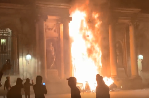ஆத்திரமடைந்த போராட்டக்காரர்கள் பிரான்சின் தென்மேற்கு நரமான போர்தோ Bordeaux நகரில் அமைந்துள்ள நகர மண்டபத்தை நேற்று வியாழக்கிழமை இரவு தீக்கிரையாக்கினர். நகர மண்டபத்தின் கதவு தீப்பிடித்தது.