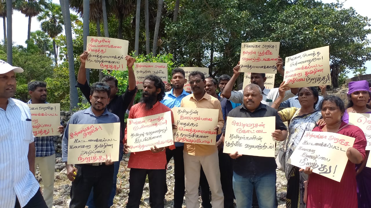 யாழ்.நெடுந்தீவு வெடியரசன் கோட்டையை பௌத்த விகாரையாக மாற்றுவதற்கு எடுக்கப்பட்டுள்ள நடவடிக்கையினை கண்டித்தும், கச்சதீவில் புத்தா் சிலைகள் வைக்கப்பட்டுள்ளமைக்கு எதிா்ப்பு தொிவித்தும் இன்று நண்பகல் நெடுந்தீவு பிரதேச செயலகம் முன்பாக கவனயீா்ப்பு போராட்டம் ஒன்று நடத்தப்பட்டுள்ளது.