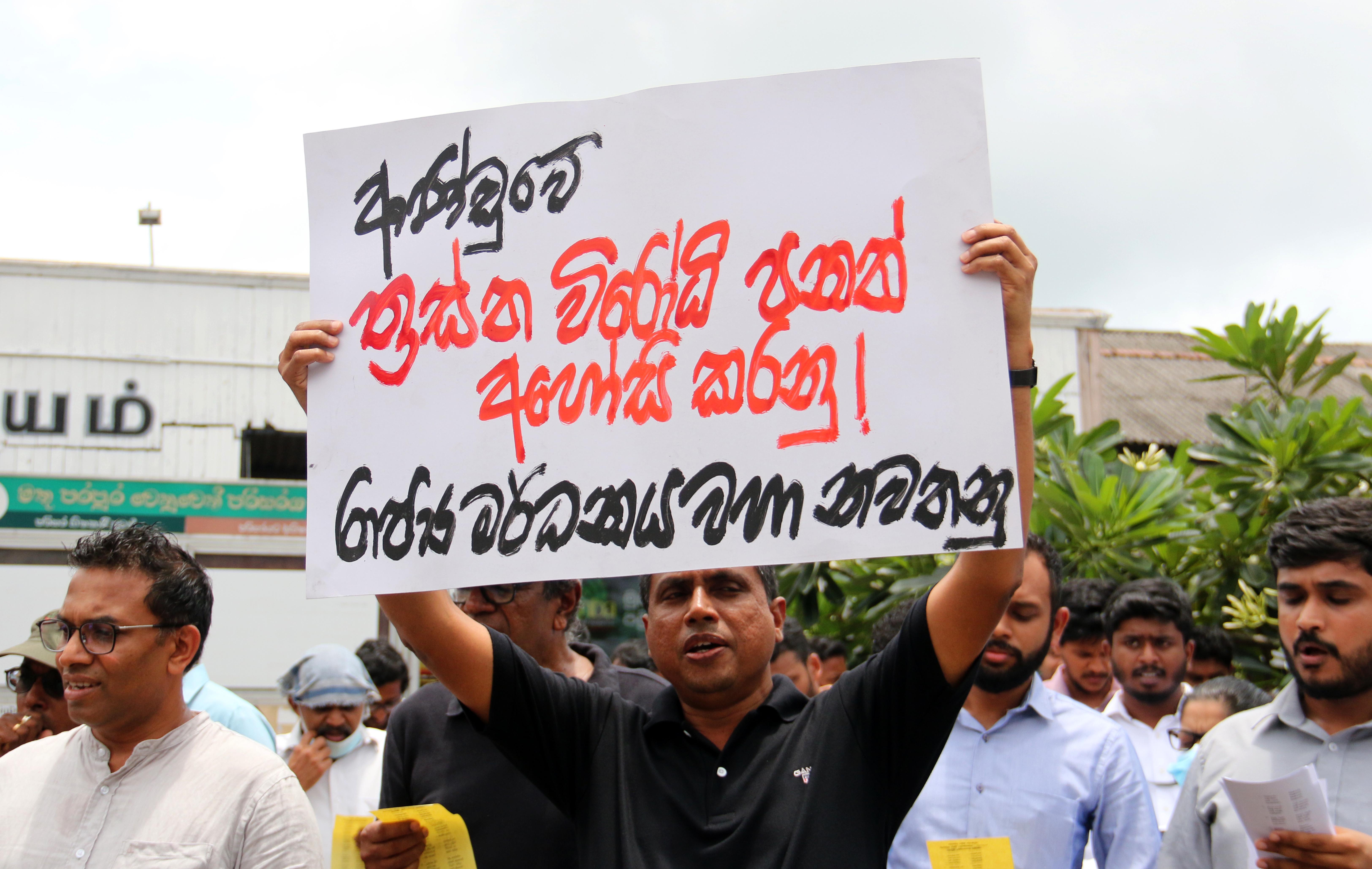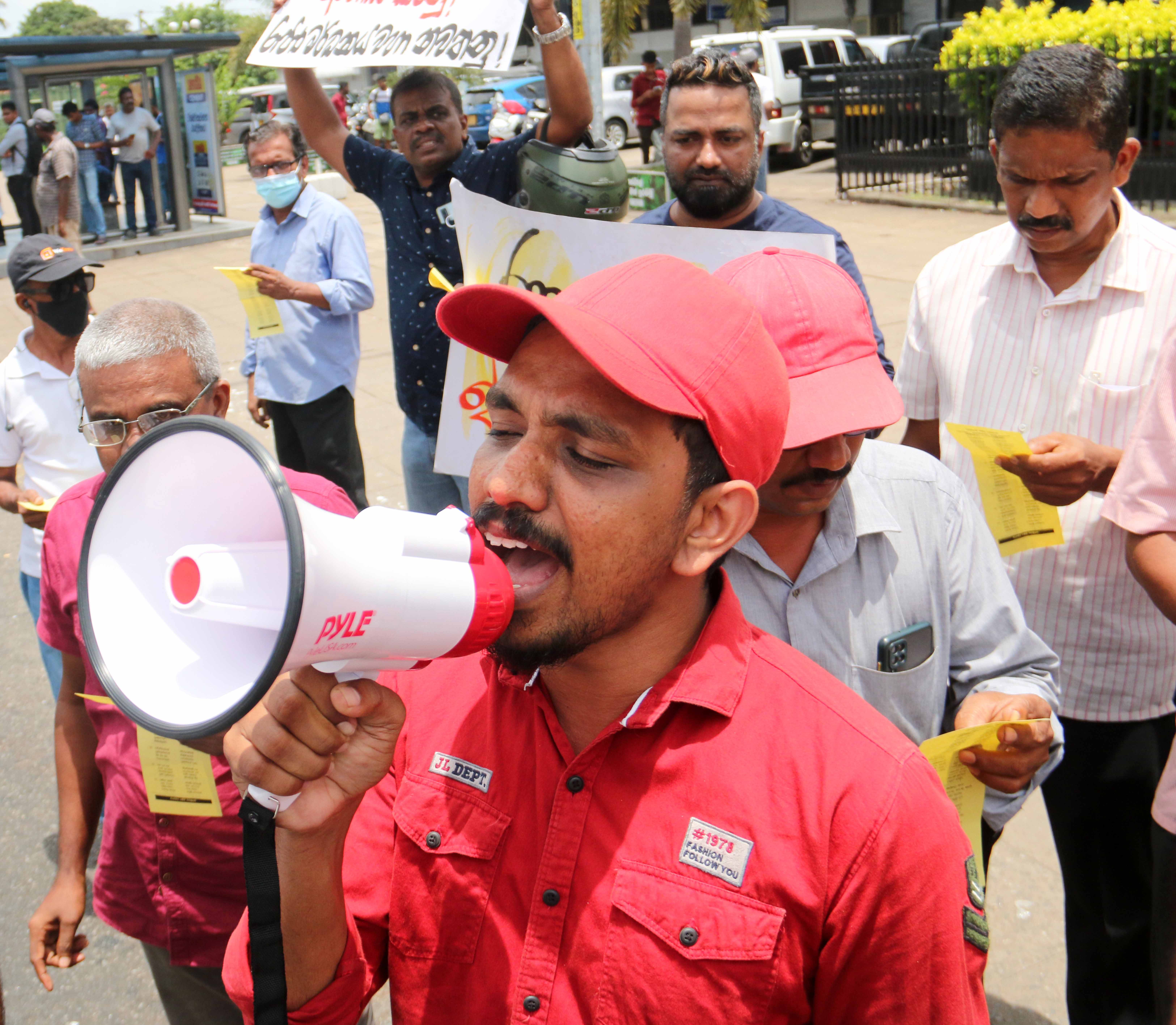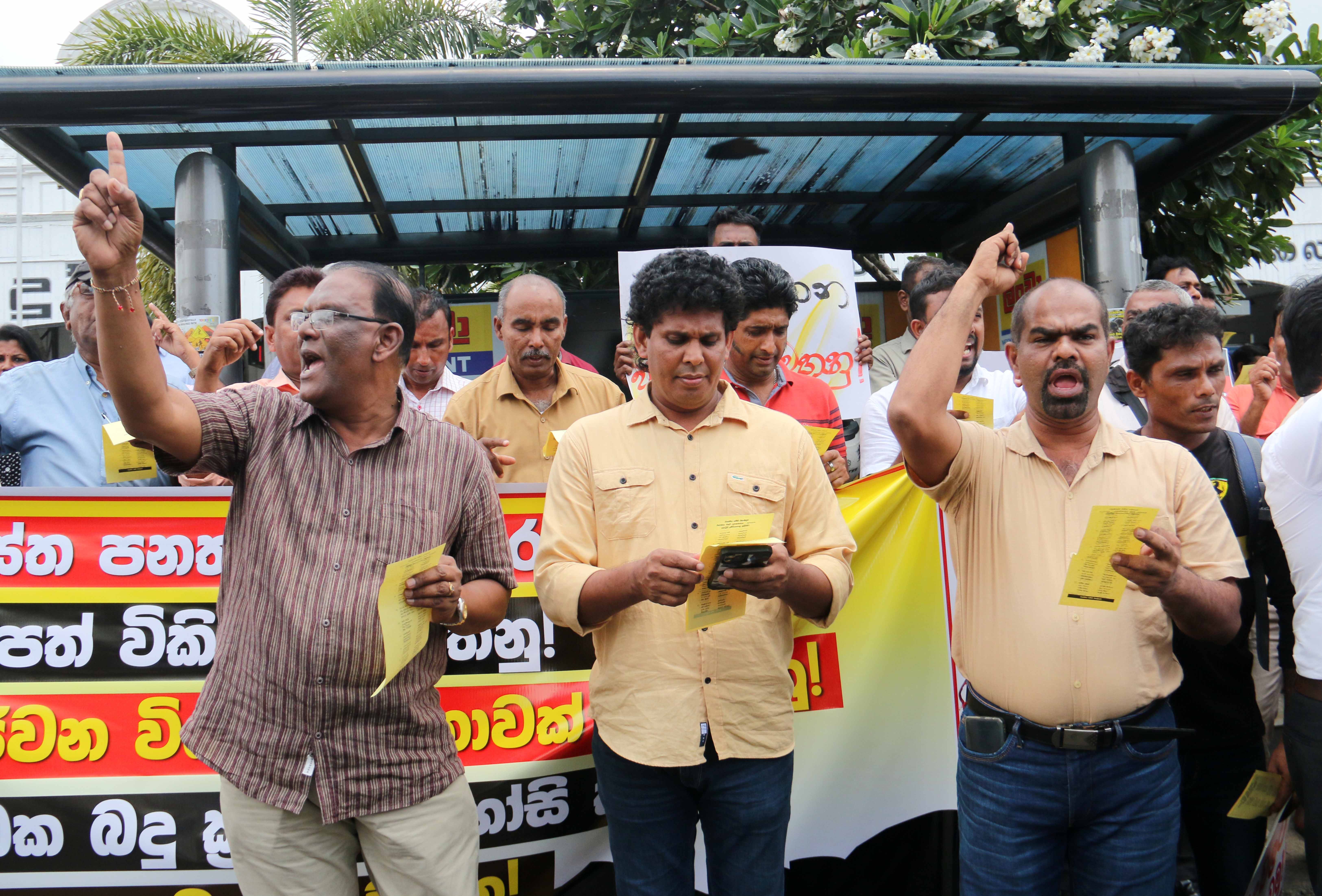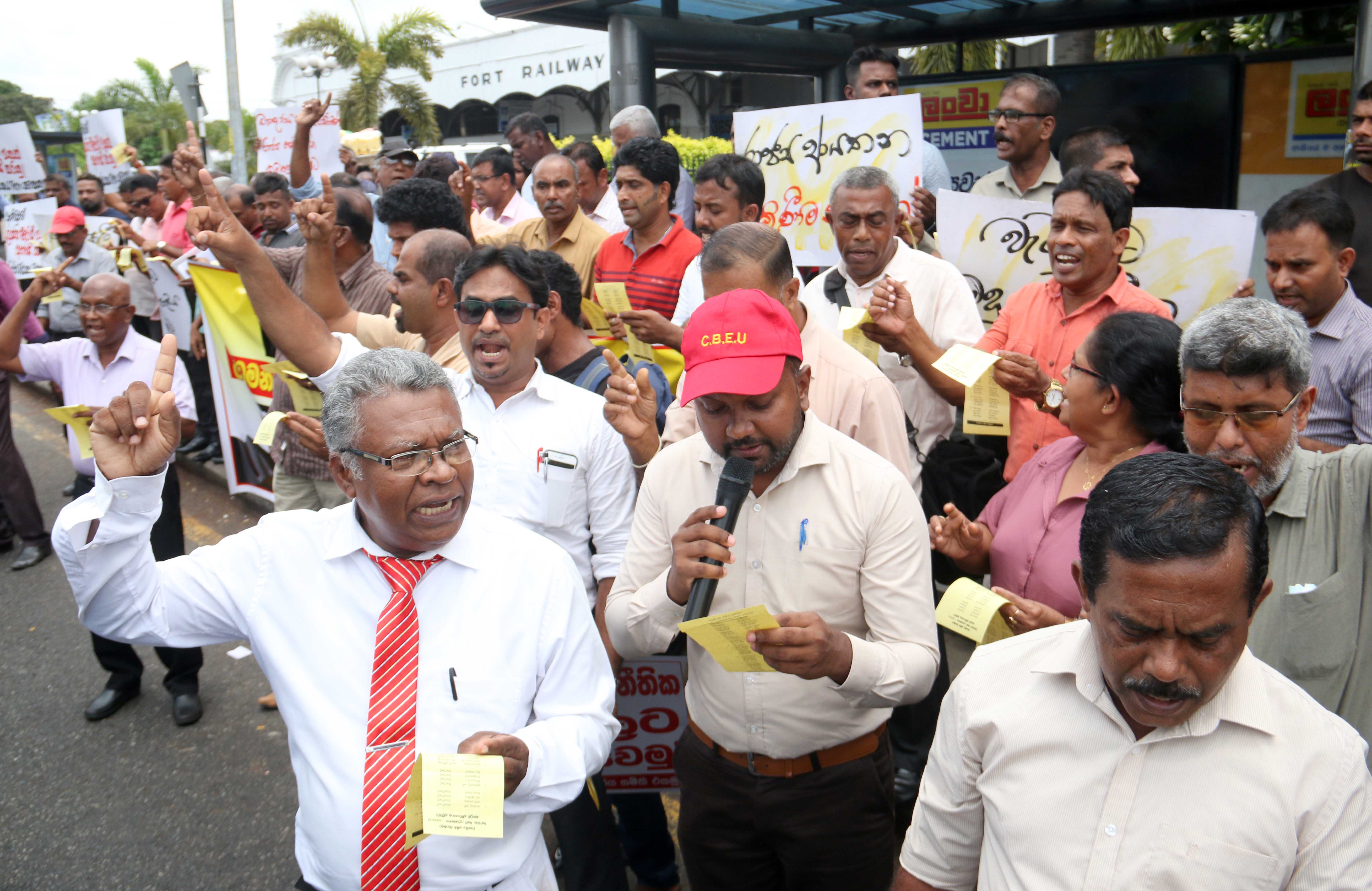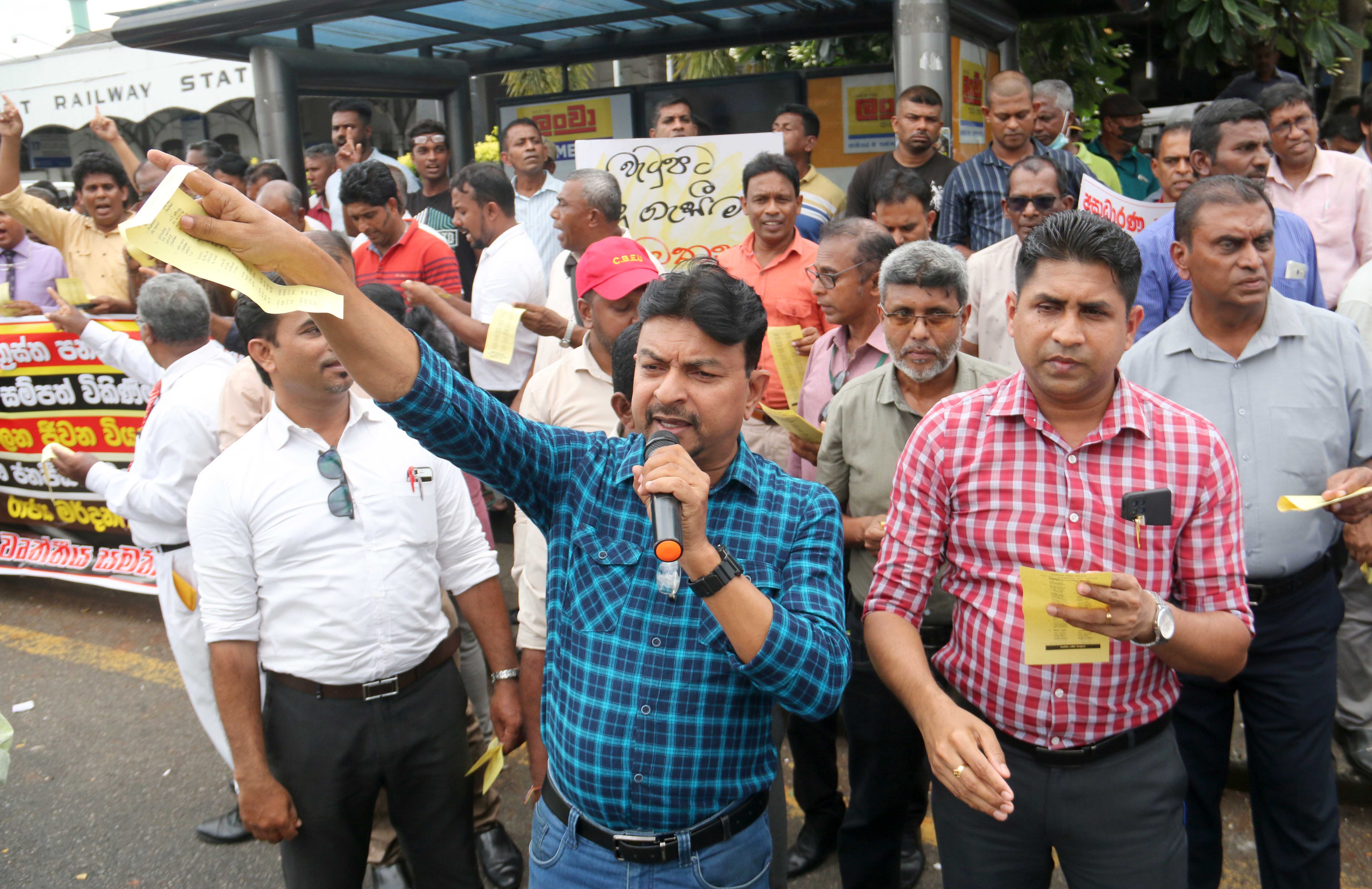நாட்டில் பயங்கரவாத தடுப்பு சட்ட மூலத்தை அமுல்படுத்துவதற்கு எதிர்ப்பு தெரிவித்தும் நாட்டின் வளங்களை வெளிநாடுகளுக்கு கொடுப்பதை நிறுத்தக் கோரியும் ஒன்றிணைந்த தொழிற்சங்கங்களின் கூட்டமைப்பினர் கொழும்பு கோட்டை ரயில் நிலையத்திற்கு முன்னால் இன்று ஆர்ப்பாட்டமொன்றை முன்னெடுத்தனர்.