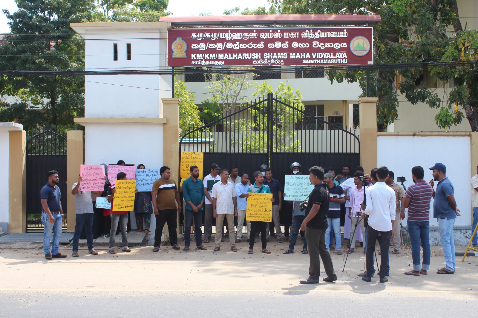 சாய்ந்தமருது கமு மழ்ஹருஸ் ஷம்ஸ் மகா வித்தியாலய பழைய மாணவர்கள், பெற்றார், பாடசாலை நலன் விரும்பிகள் ஏற்பாட்டில் பல்வேறு கோரிக்கைகளை முன்வைத்து இன்று (08) கவனயீர்ப்பு போராட்டம் ஒன்று பாடசாலை முன்றலில் இடம்பெற்றது.