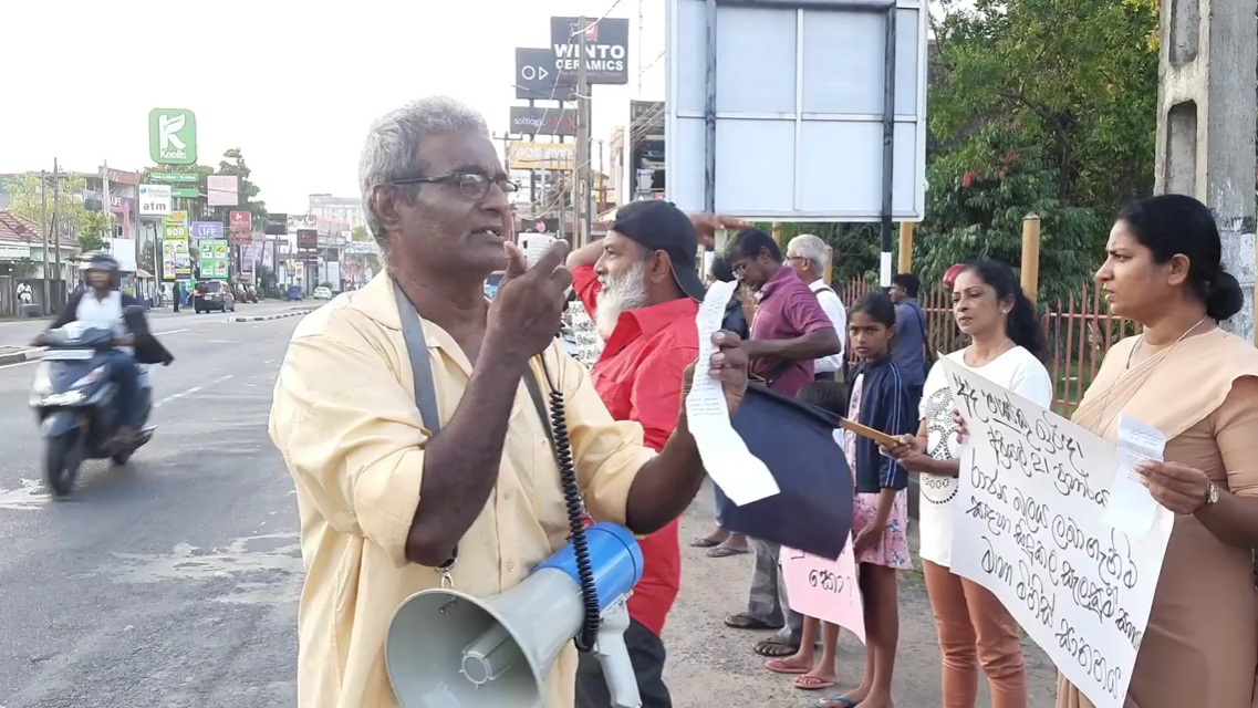 அரசாங்கத்தின் புதிய பயங்கரவாத ஒழிப்பு எதிர்ப்பு சட்டத்திற்கு எதிராகவும், அதிகரிக்கப்பட்டுள்ள மின்சார கட்டணத்தை குறைக்குமாறு வலியுறுத்தியும், புதிய வரி கொள்கையை நீக்குமாறு வலியுறுத்தியும், மக்களுக்கு சலுகைகளை வழங்குமாறு கோரியும் ஞாயிற்றுக்கிழமை (09) மாலை 5 மணி அளவில் நீர்கொழும்பு தெல்வத்தை சந்தியில் ஆர்ப்பாட்டம் நடைபெற்றது.