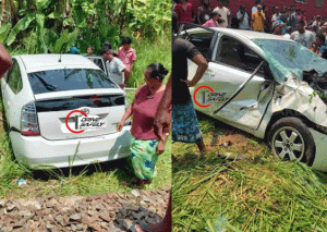 ஹிக்கடுவ – தொடந்துவ ரயில் பாதையில் தொடந்துவ ரயில் கடவையில் கார் ஒன்று ரயிலால் மோதப்பட்டதில் காரில் பயணித்த விஹாரை ஒன்றின் விஹாராதிபதி, காரின் சாரதி ஆகியோர் படுகாயமடைந்துள்ளதாக ஹிக்கடுவ பொலிஸார் தெரிவிக்கின்றனர்.