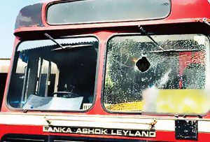 இந்தக் கல் வீச்சுத் தாக்குதலால் பஸ்ஸின் முன்பக்க கண்ணாடி சேதமடைந்துள்ளதாக பொலிஸார் தெரிவித்துள்ளனர்.