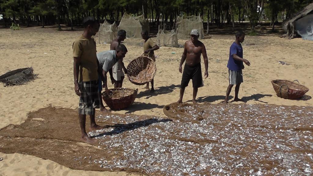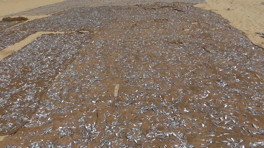 பிடிக்கபட்ட அதிகமான நெத்தலி மீன்களை உடனடியாக விற்பனை செய்யமுடியாமையினால் கடற்கரையேரத்தில் கருவாடாய் மாற்றும் நடவடிக்கைககளில் மீனவர்கள் ஈடுபட்டிருந்ததை அவதானிக்க முடிந்தது.