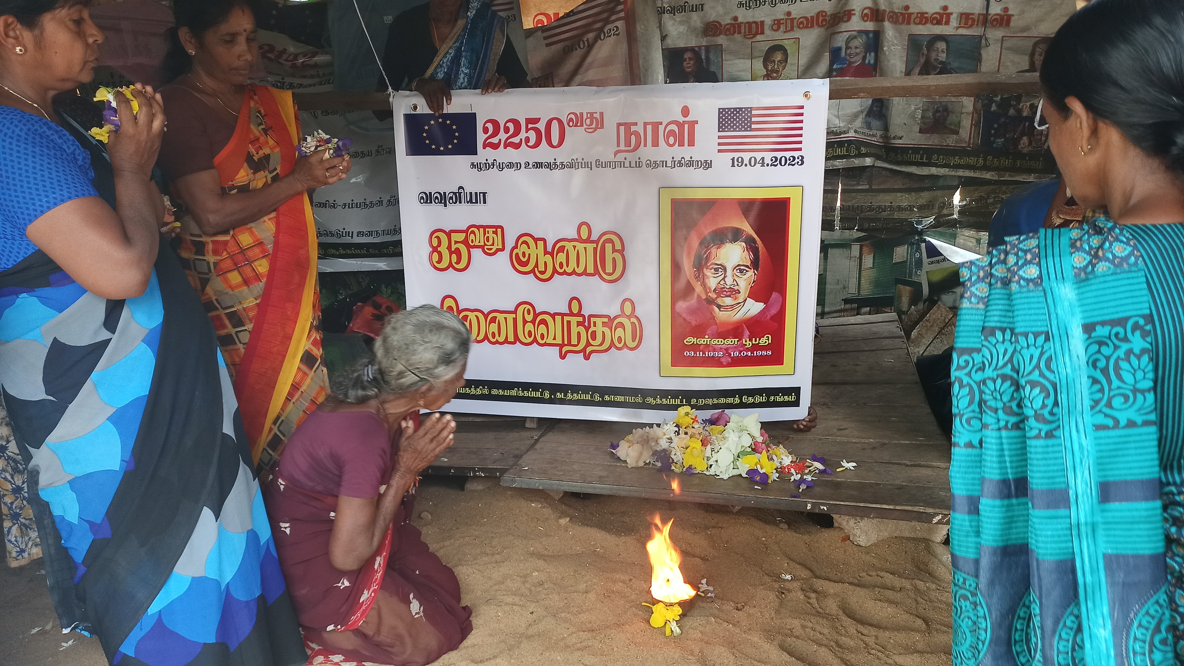 வவுனியாவில் காணாமல் ஆக்கப்பட்டோரது உறவினர்களால் இன்று (19.4.2023) அன்னை பூபதியின் 35வது ஆண்டு நினைவு தினம் அனுஷ்டிக்கப்பட்டது.