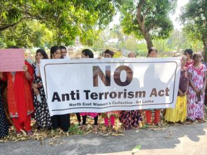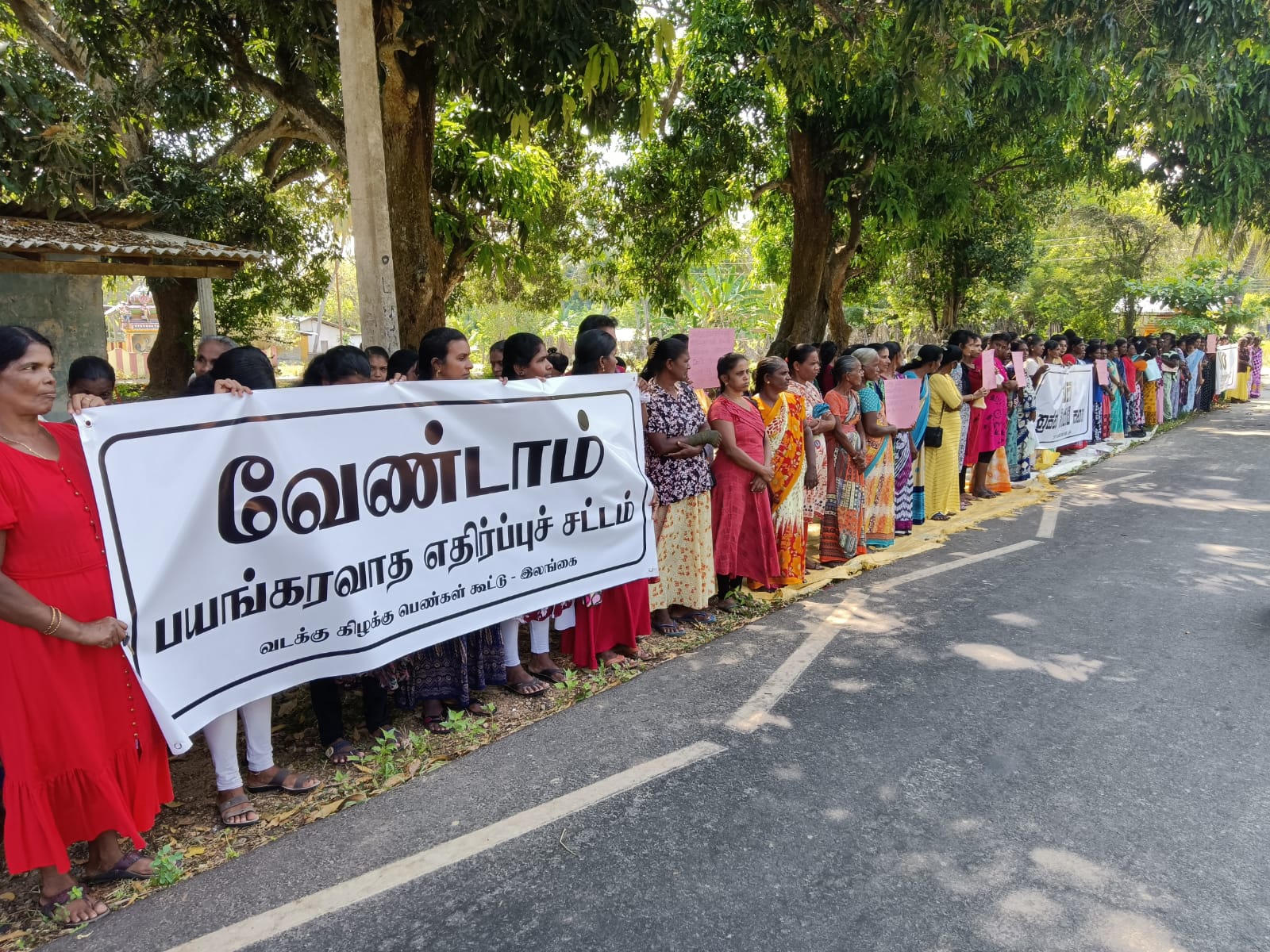 இலங்கையில் புதிதாக கொண்டுவரப்படவுள்ள பயங்கரவாத எதிர்ப்புச் சட்டம் வேண்டாம் என்று கோரி வடக்கு கிழக்கு பெண்கள் கூட்டு என்ற அமைப்பு வியாழக்கிழமை (20) மாபெரும் எதிர்ப்பு ஆர்ப்பாட்டப் பேரணியை நடத்தியது.