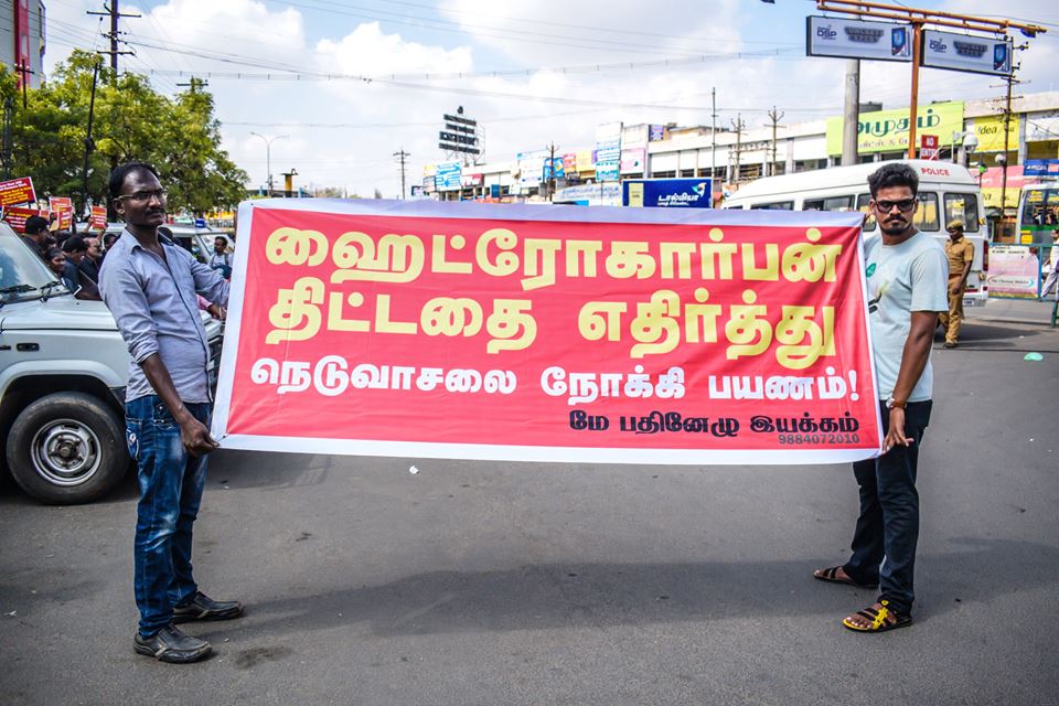 இதில் 100க்கும் மேற்பட்ட தோழர்கள் கைது செய்யப்பட்டனர். இதில் தந்தை பெரியார் திராவிடர் கழகம், விடுதலை தமிழ்ப் புலிகள், காஞ்சி மக்கள் மன்றம், திராவிடர் விடுதலைக் கழகம், தமிழர் விடியல் கட்சி மற்றும் மே பதினேழு இயக்கம் கலந்துகொண்டது.