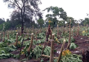 அத்துடன், ஒலுமடு கிராம அலுவலர் பிரிவில் உள்ள விவசாயிகள் பலரின் வாழ்வாதாரமாக இருந்த பப்பாசி, வாழை, புகையிலை, கத்தரி உள்ளிட்ட பயன்தரு மரங்களும் காற்றில் முறிந்து அழிவடைந்துள்ளன. தமது வாழ்வாதரமாக மேற்கொண்ட பயிர்கள் அழிவடைந்தமை காரணமாக விவசாயிகள் பெரிதும் பாதிப்படைந்துள்ளனர்.