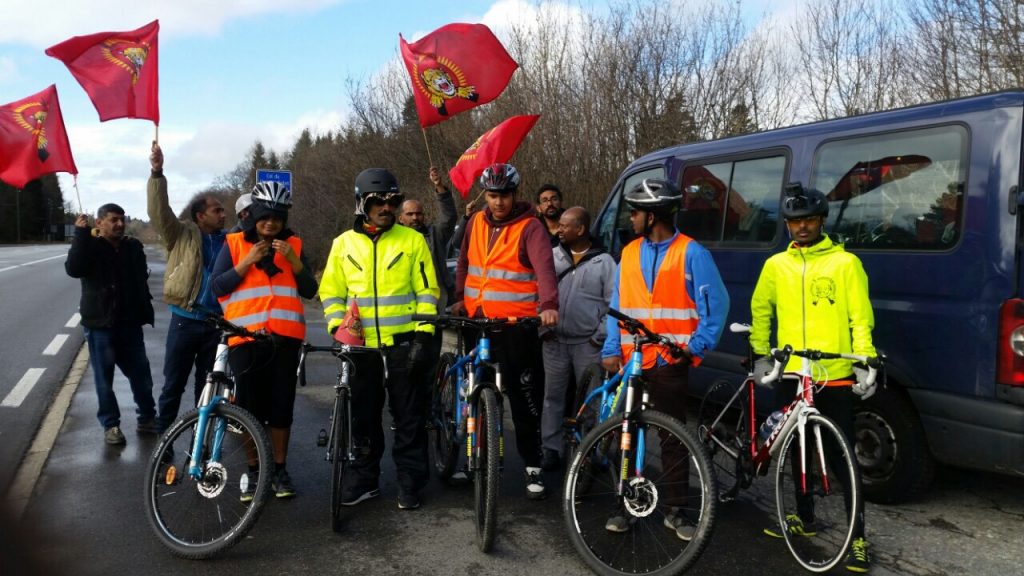 தமிழின அழிப்புக்கு நீதி கோரி பெல்ஜியத்தில் ஆரம்பித்த மனிதநேய ஈருருளிப் பயணம் 10 வது நாளாக இன்றைய தினம் ஜெனீவா நகரை அண்மித்துக் கொண்டிருக்கின்றது. குளிரான காலநிலையில் மனிதநேய செயற்பாட்டாளர்கள் மாவீரர்களையும் மக்களையும் மனதில் நிறுத்தி தளராத உறுதியுடன் பயணித்துக்கொண்டிருக்கின்றனர்.