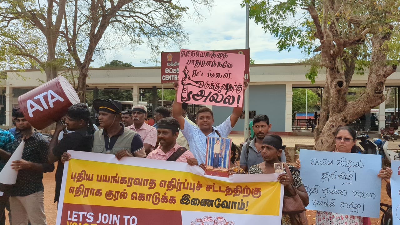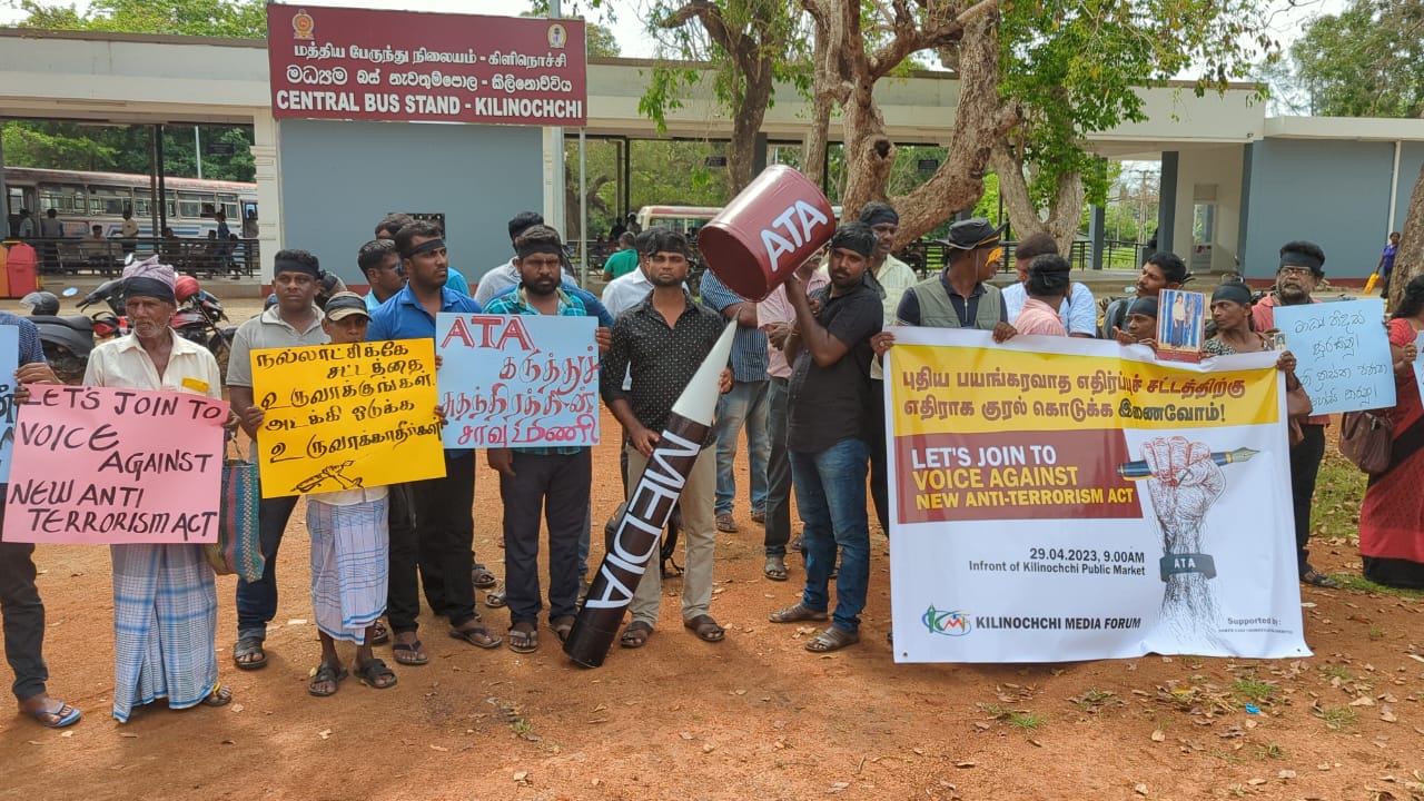 அரசினால் முன்வைக்கப்பட்டுள்ள புதிய பயங்கரவாத எதிர்ப்புச் சட்டமூலத்திற்கு எதிராக கிளிநொச்சியில் இன்று (29) ஊடகவியலாளர்கள் சிவில் அமைப்புக்கள் இணைந்து போராட்டம் ஒன்றை மேற்கொண்டிருந்தனர்.