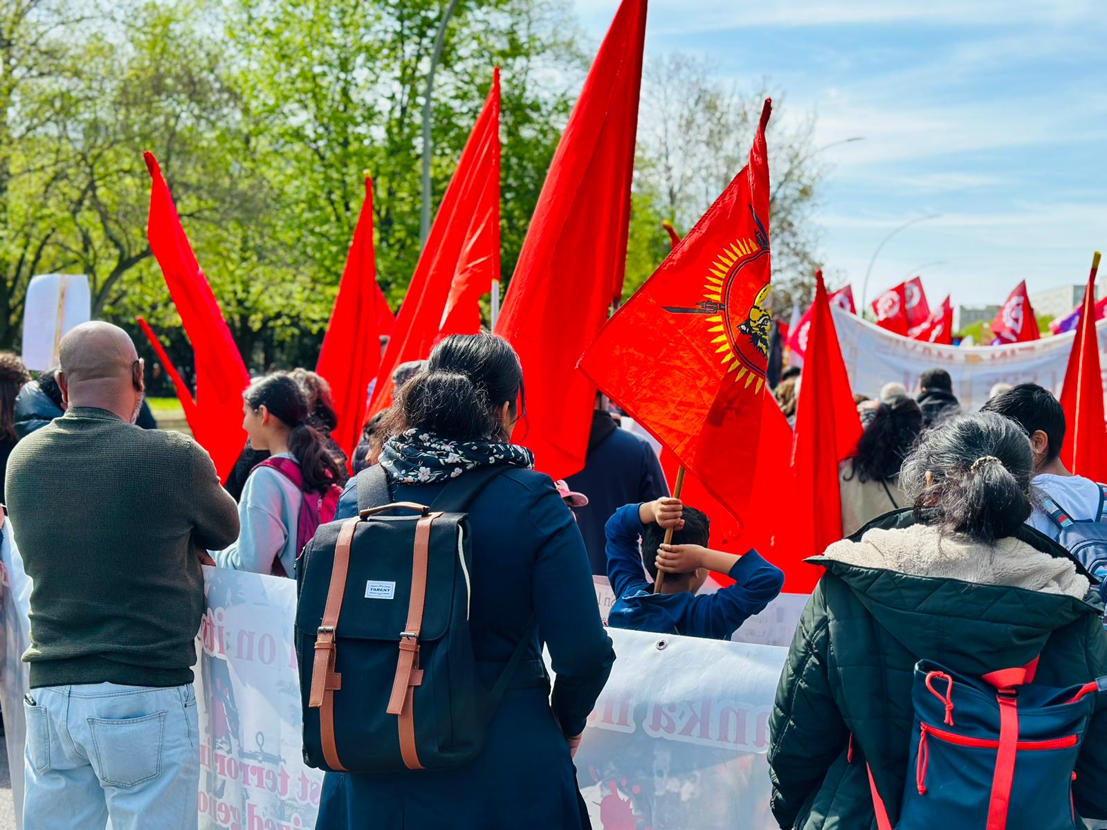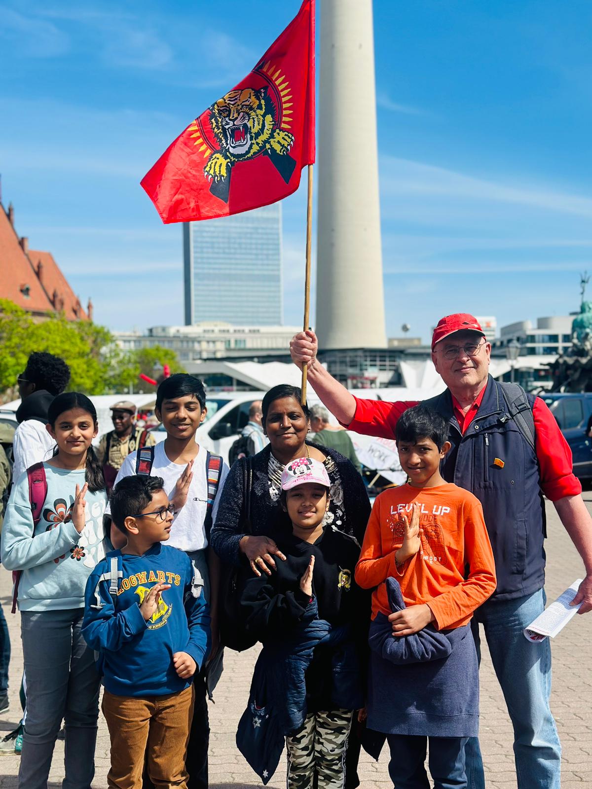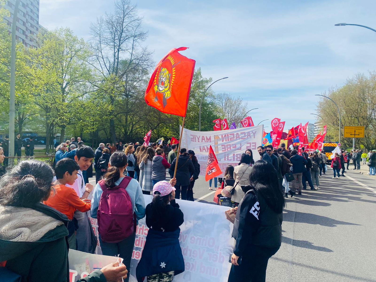 யேர்மன் நாட்டின் தொழிற்சங்கத்தின் ஏற்பாட்டில் நடைபெற்ற பல்லாயிரக்கணக்கான மக்கள் கலந்துகொண்ட பேரணியில் தமிழ் மக்களும் கலந்துகொண்டு தமிழின அழிப்புக்கு நீதி கோரி , தமிழீழ விடுதலை கோசங்களுடன் போராடினார்கள்.