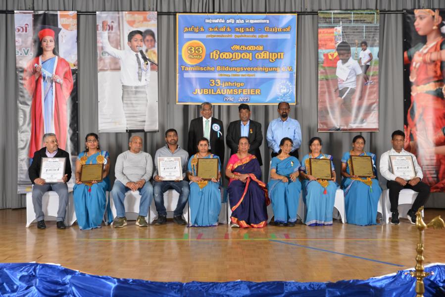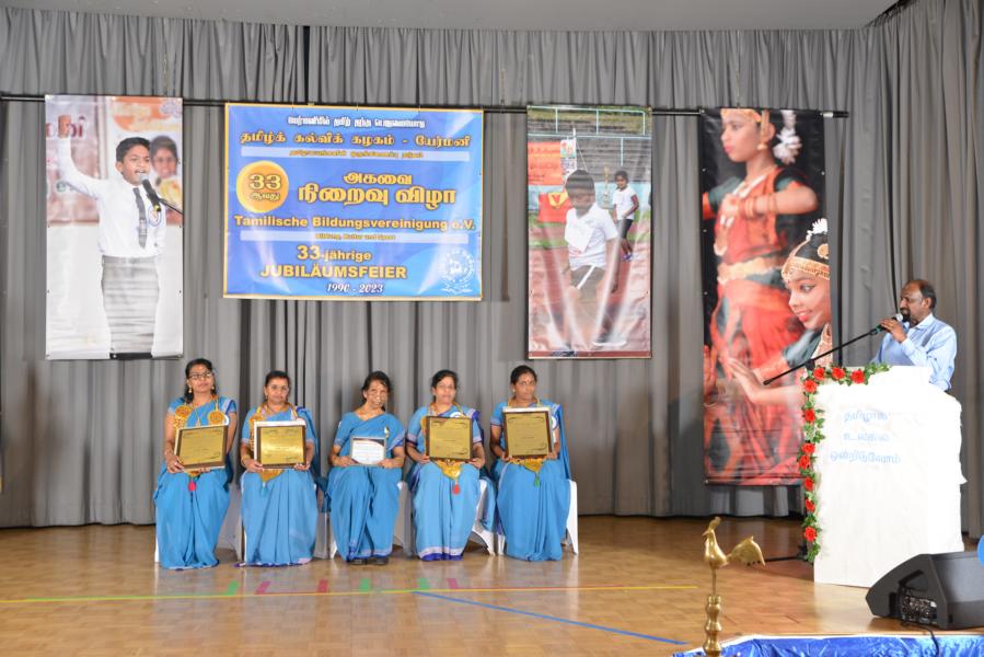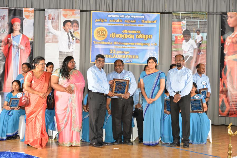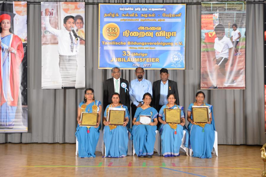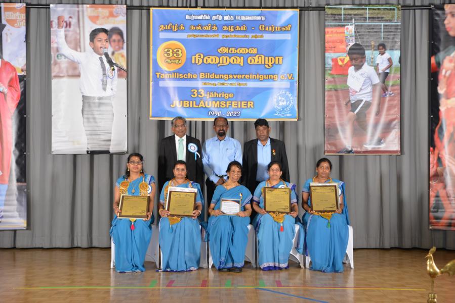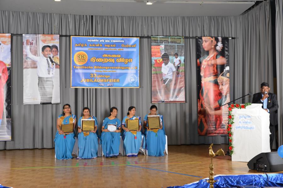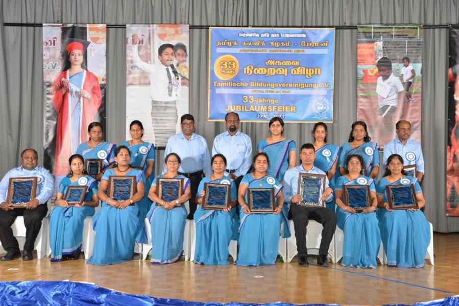 தாய்த்தமிழை வளர்க்கும் தூயபணியில் தமிழாலயங்களில் இணைந்து பணியாற்றிவரும் ஆசிரியப் பெருந்தகைகளினதும் செயற்பாட்டாளர்களினதும் பணித்திறன்களைப் போற்றும் வகையில் 5,10,15 ஆண்டுகள் பணிநிறைவிற்கான மதிப்பளிப்பும், 20ஆண்டுகள் பணித்திறனாற்றியவர்களுக்கு தமிழ் வாரிதி என்றும் 25 ஆண்டுகள் பணித்திறனாற்றியவர்களுக்கு தமிழ் மாணி என்றும் பட்டமளித்துப் பாராட்டப்பட்டமை சிறப்புக்குள் சிறப்பானது. இவர்களைத் தாண்டி 30 ஆண்டுகள் பணித்திறனாற்றிய திறனாளர்களுக்குத் தமிழ்க் கல்விக் கழகத்தின் உயர்விருதான முப்பது ஆண்டுகளைச் சுட்டும் மூன்று உடுக்கள் பொறிக்கப்பட்ட பதக்கத்தை அப்பணியாளர்களின் நெஞ்சோடு பதித்து அவர்கள் ஆற்றிய பணியின் சிறப்பு வரலாற்றில் பதிவாக்கப்பட்டது. இம்மதிப்பளிப்பை கொம்பூர்க், சுல்ஸ்பாக் தமிழாலயத்தில் 30 ஆண்டுகள் ஆசிரியராகப் பணியாற்றிய தமிழ் மாணி திருமதி பூரணம் வேலாயுதம் அவர்கள் பெற்றுக்கொண்டார்.