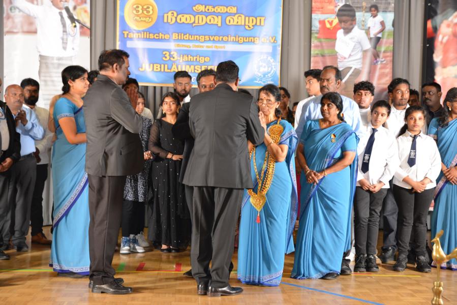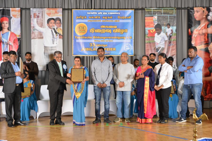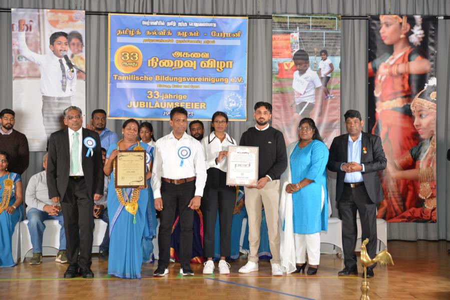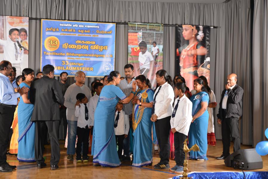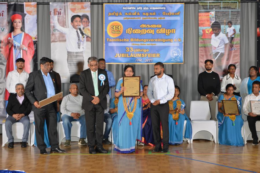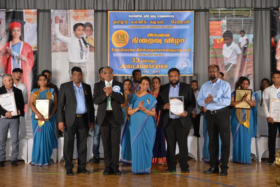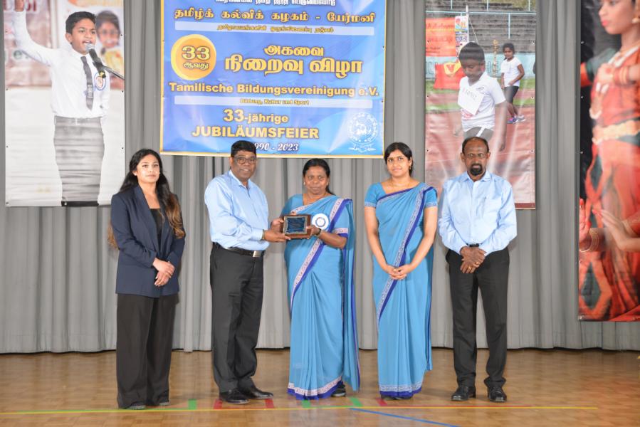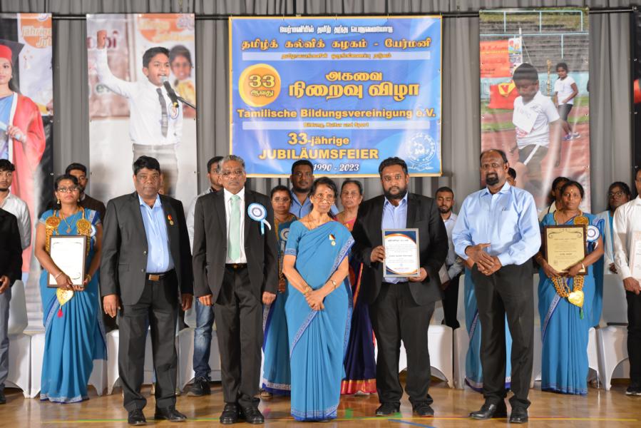 தாய்த்தமிழை வளர்க்கும் தூயபணியில் தமிழாலயங்களில் இணைந்து பணியாற்றிவரும் ஆசிரியப் பெருந்தகைகளினதும் செயற்பாட்டாளர்களினதும் பணித்திறன்களைப் போற்றும் வகையில் 5,10,15 ஆண்டுகள் பணிநிறைவிற்கான மதிப்பளிப்பும், 20ஆண்டுகள் பணித்திறனாற்றியவர்களுக்கு தமிழ் வாரிதி என்றும் 25 ஆண்டுகள் பணித்திறனாற்றியவர்களுக்கு தமிழ் மாணி என்றும் பட்டமளித்துப் பாராட்டப்பட்டமை சிறப்புக்குள் சிறப்பானது. இவர்களைத் தாண்டி 30 ஆண்டுகள் பணித்திறனாற்றிய திறனாளர்களுக்குத் தமிழ்க் கல்விக் கழகத்தின் உயர்விருதான முப்பது ஆண்டுகளைச் சுட்டும் மூன்று உடுக்கள் பொறிக்கப்பட்ட பதக்கத்தை அப்பணியாளர்களின் நெஞ்சோடு பதித்து அவர்கள் ஆற்றிய பணியின் சிறப்பு வரலாற்றில் பதிவாக்கப்பட்டது. இம்மதிப்பளிப்பை கொம்பூர்க், சுல்ஸ்பாக் தமிழாலயத்தில் 30 ஆண்டுகள் ஆசிரியராகப் பணியாற்றிய தமிழ் மாணி திருமதி பூரணம் வேலாயுதம் அவர்கள் பெற்றுக்கொண்டார்.
