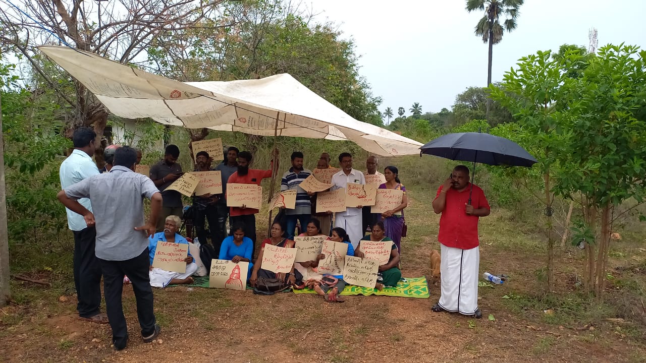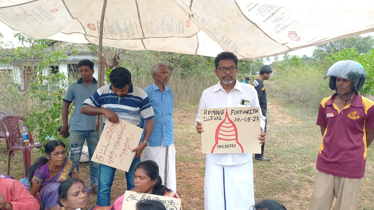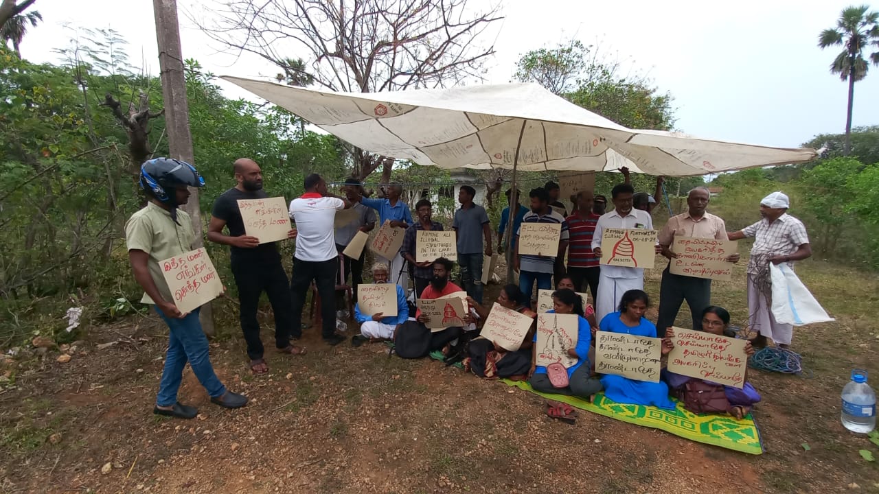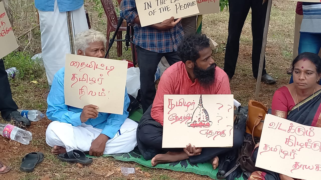 14 குடும்பங்களுக்கு சொந்தமான அண்ணளவாக 100 பரப்பு காணியை விடுவிக்க கோரியும் சட்டவிரோதமாக கட்டப்பட்ட பௌத்தக் கட்டுமானத்தை அகற்றக் கோரியும் பௌத்தமயமாக்கல் திணிப்பை எதிர்த்தும் போராட்டக்காரர்கள் போராட்டத்தில் ஈடுபட்டனர்.