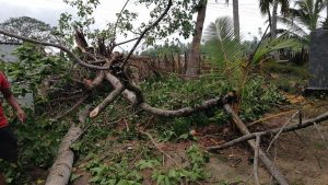 தென்னை, வாழை மற்றும் பலா உள்ளிட்ட மரங்கள் முறிந்து வீட்டுக்கூரை உட்பட வீதியோரங்களிலும் சேதம் விளைவிக்கப்பட்டுள்ளன. இவ்வாறு சுமார் ஐந்துக்கும் மேற்பட்ட வீடுகள் பலத்த காற்றுடன் கூடிய மழையினால் சேதம் விளைவிக்கப்பட்டுள்ளன.