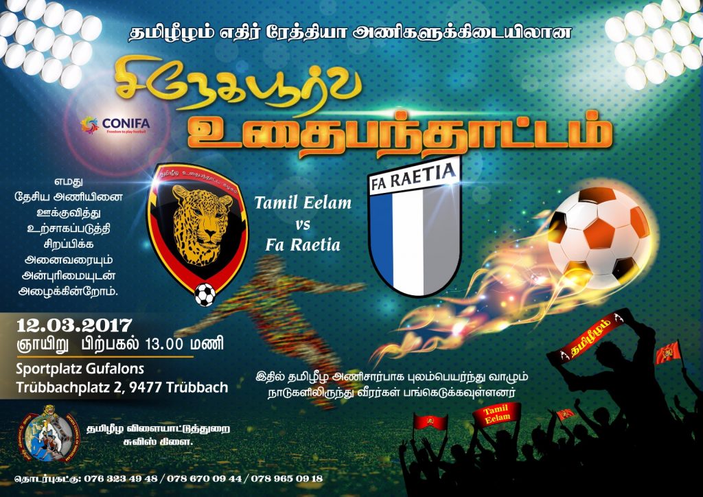 இவ் உதைபந்தாடடப போட்டியில் தமிழீழ அணி சார்பாக புலம்பெயர்ந்து வாழும் பல நாடுகளில் இருந்து வீரர்கள் பங்கெடுக்கவுள்ளதனால் எமது தேசிய அணியினை ஊக்குவித்து உற்சாகப்படுத்தி சிறப்பிக்க அனைவரையும் அழைக்கும் முகமாக; உங்கள் இணையத்தளங்களில் முதன்மைப்படுத்தி இணைப்பதோடு, முகப்புப் பக்கங்களின் ஊடாக பகிர்ந்து கொள்வதுடன் மின்னஞ்சல் வழியாகவும் உங்கள் நண்பர்களுக்கும் தயவுசெய்து தெரியப்படுத்தவும்.